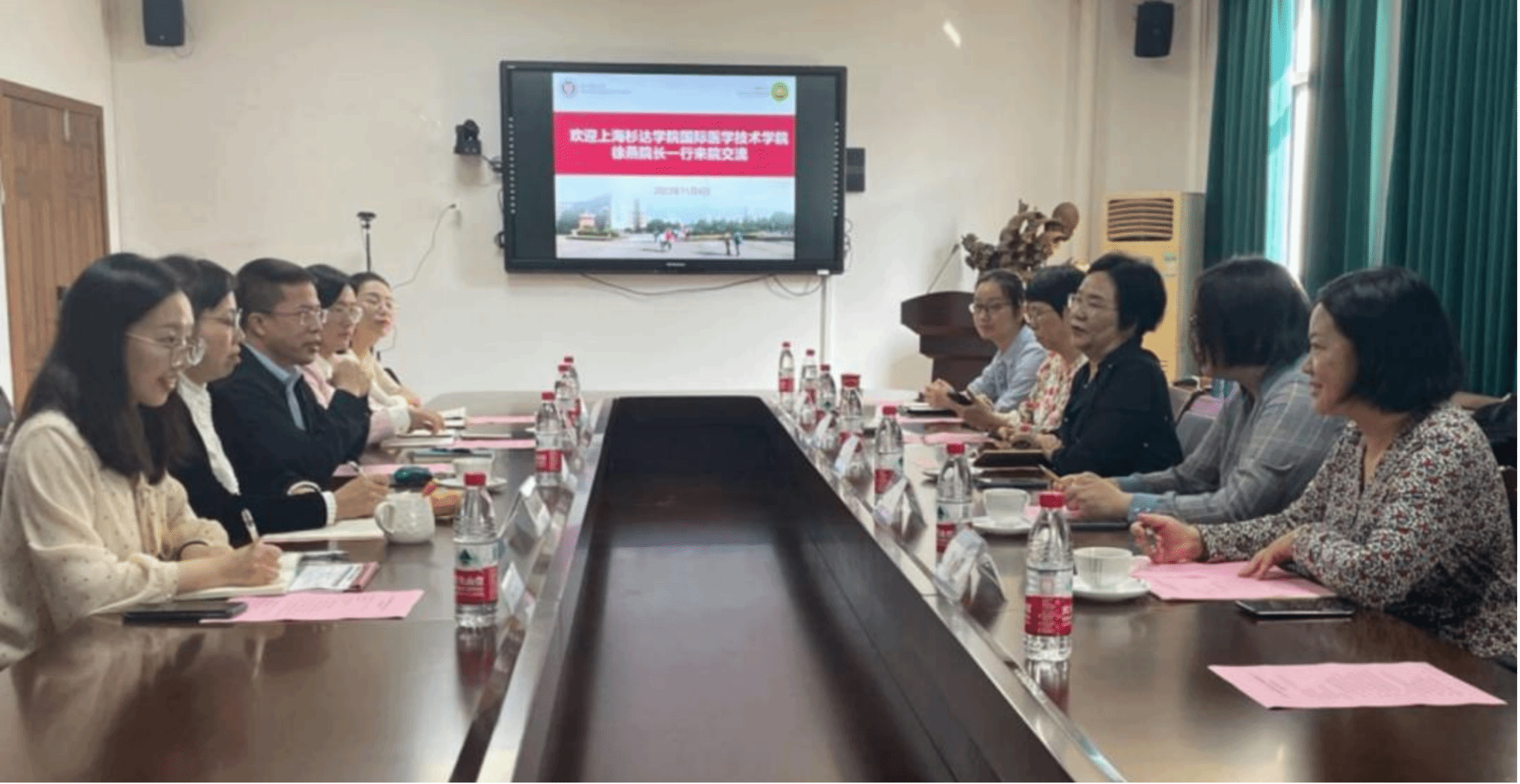 11月6日,上海杉达群交 国际医学技术群交 院长徐燕、党总支书记丁俭、 副院长张静、护理系主任岳立萍、护理系副主任胡菁来院访问交流。群交 院长蔡福满、党委副书记陈素云、教学办主任孙海琴、外科教研室副主任江思思等在群交 会议室热情接待了客人。