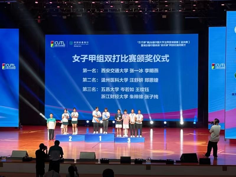 2023年8月9日至16日,群交 郑恩婕同学(校网球队队员)参加由中国大学生体育协会主办的第26届中国大学生网球锦标赛(总决赛)中,不畏艰苦,顽强拼搏,敢拼敢打,一路过关斩将,在连续战胜北京大学、云南财经大学、四川大学后进入四强,决赛中惜败实力强劲的西安交大,获得本届总决赛女子双打亚军。