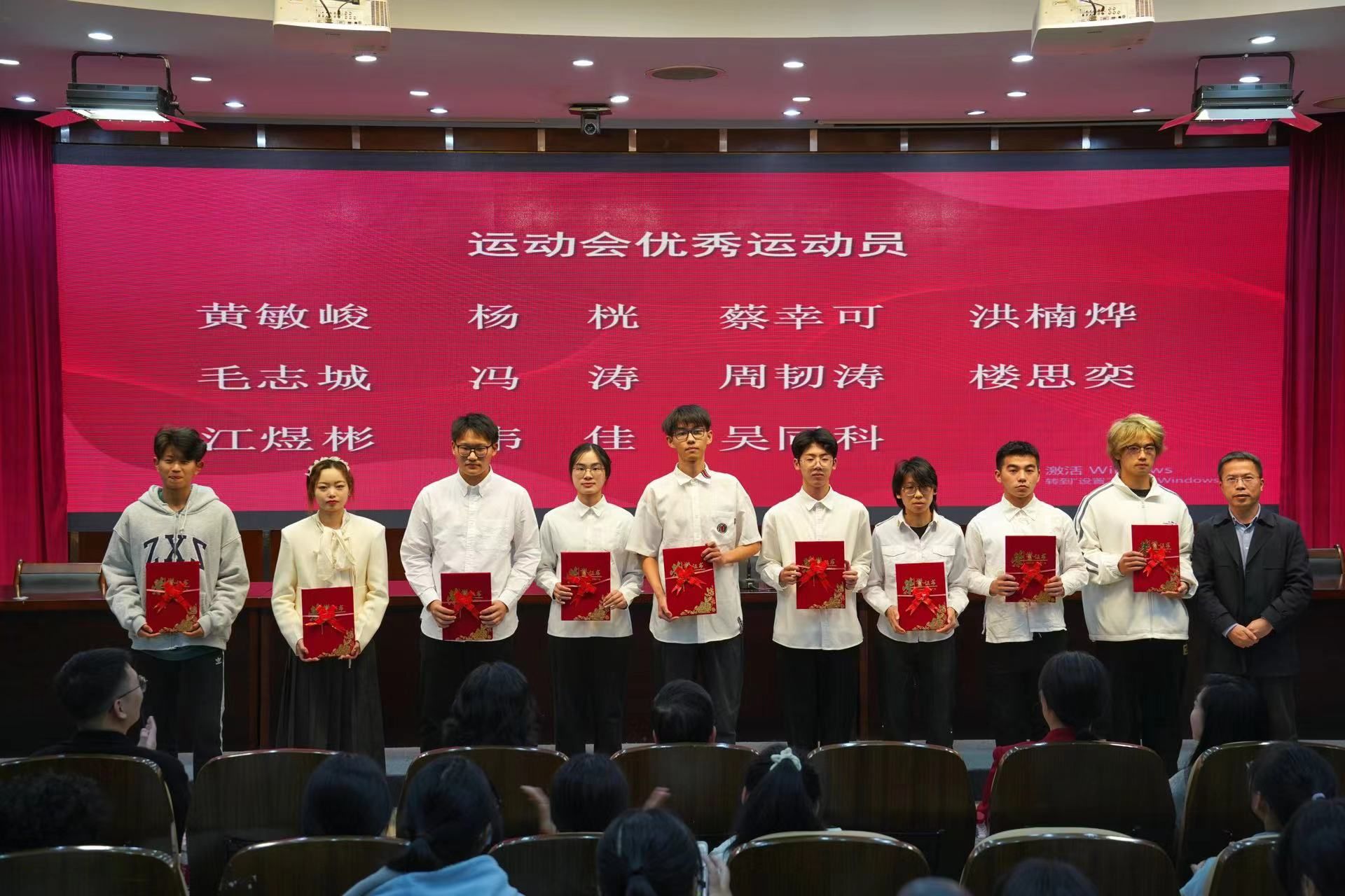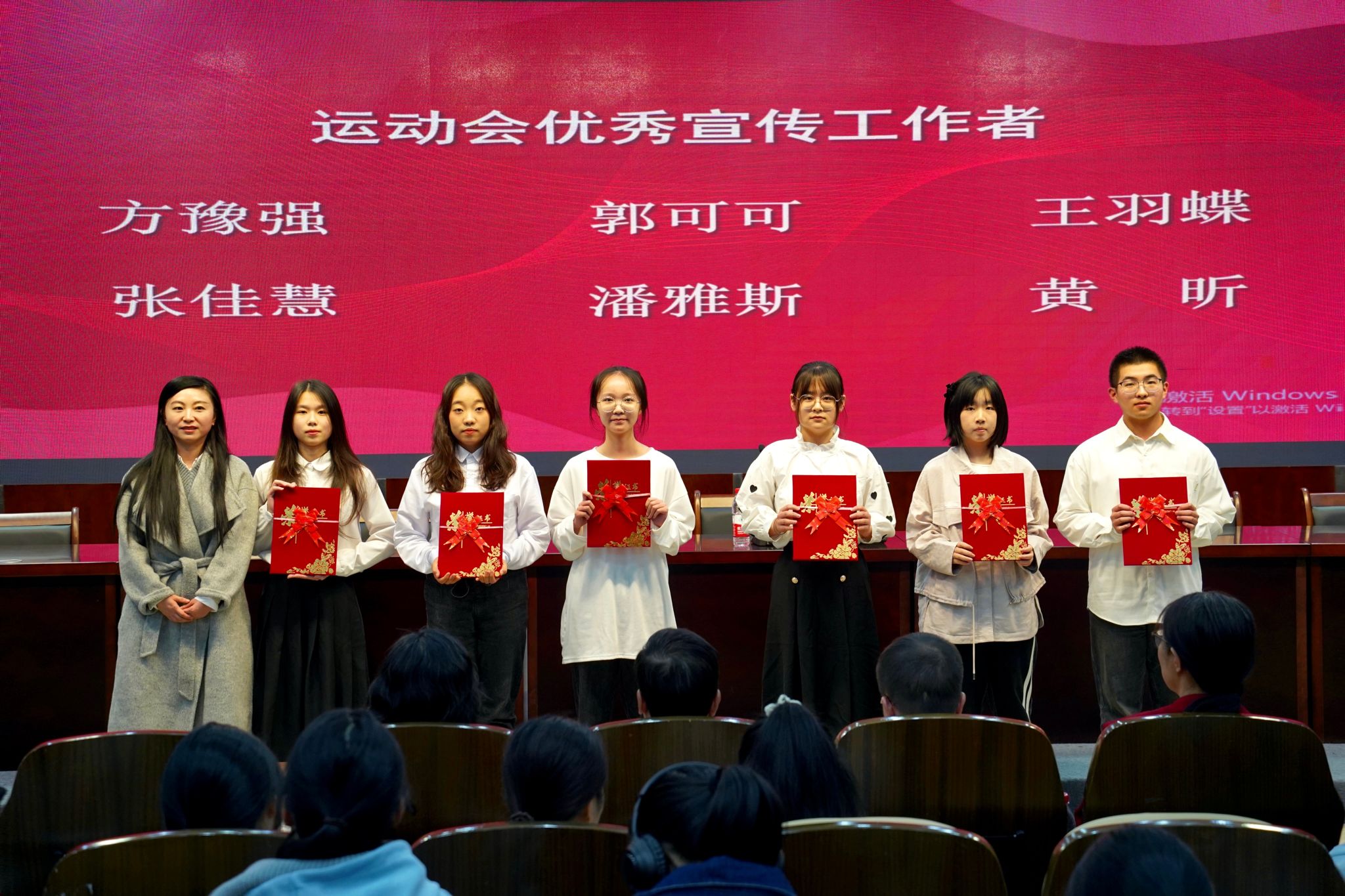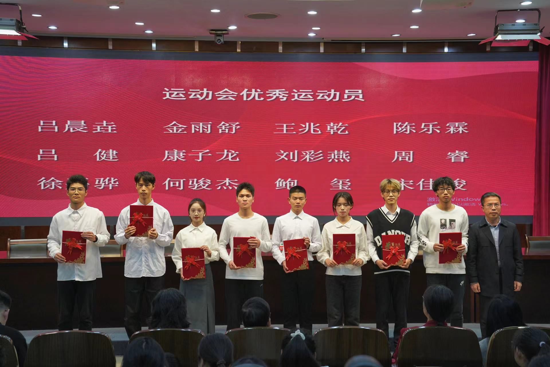 此外在表彰活动中,群交 团委书记叶星用早谋划、精部署、聚合力三个关键词对此次运动会作了总结回顾。学生干部代表钱锦颖、张苏宁及省级、校级优秀运动员代表宋湘珺、金雨欣、邬易航在发言中提到,未来会继续弘扬此次运动会的奋斗精神,不断发扬群交 “护之以技,理之以道”的院训精神,通过顽强拼搏实现自我完善与超越,不负时代、追梦理想,为中华民族伟大复兴贡献自己的青春力量!