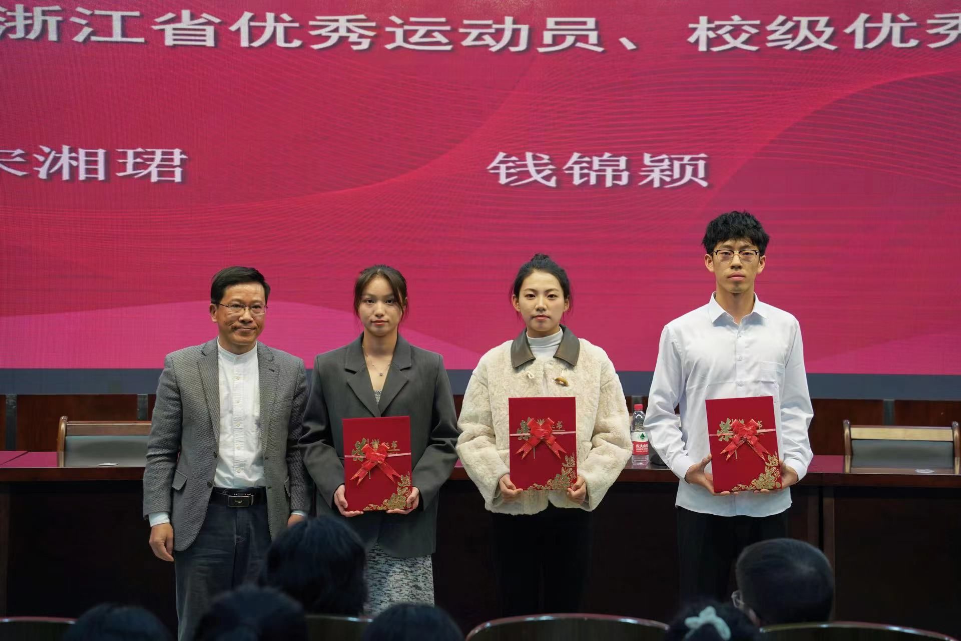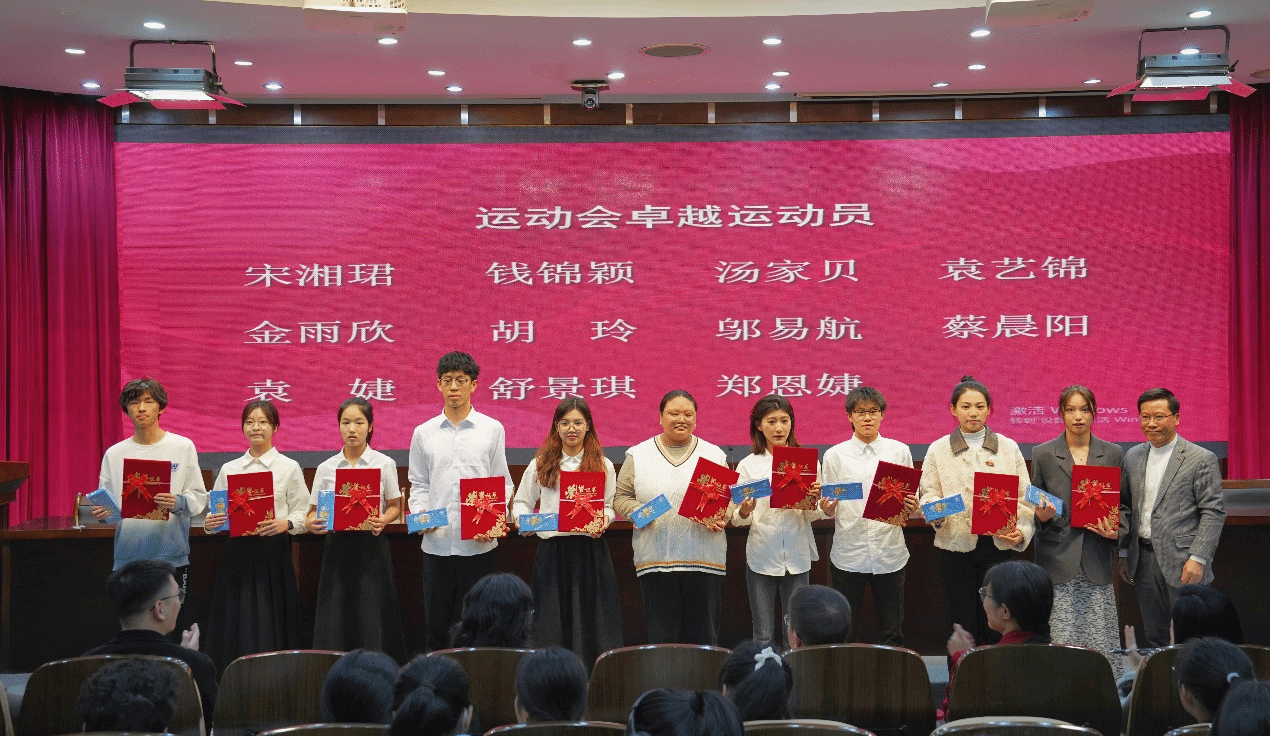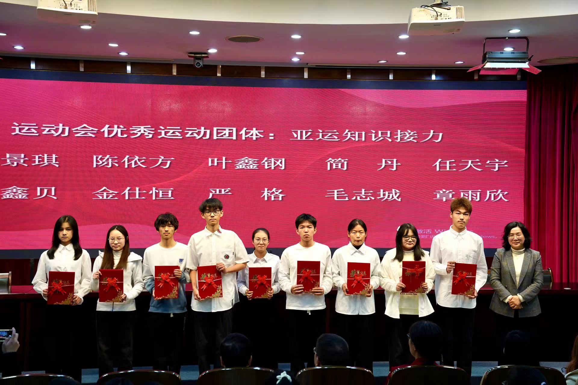 此外在表彰活动中,群交 团委书记叶星用早谋划、精部署、聚合力三个关键词对此次运动会作了总结回顾。学生干部代表钱锦颖、张苏宁及省级、校级优秀运动员代表宋湘珺、金雨欣、邬易航在发言中提到,未来会继续弘扬此次运动会的奋斗精神,不断发扬群交 “护之以技,理之以道”的院训精神,通过顽强拼搏实现自我完善与超越,不负时代、追梦理想,为中华民族伟大复兴贡献自己的青春力量!