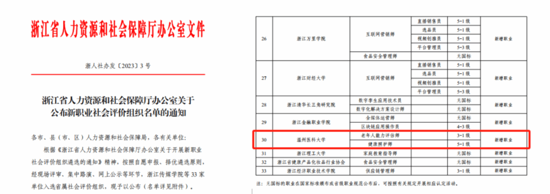 近日,浙江省人力资源和社会保障厅向社会发布一批新职业社会评价组织名单,33家单位入选省属社会评价组织,群交 位列其中,新增健康照护师、老年人能力评估师两个新职业技能等级认定资格工种。群交 高度重视此次申报工作,根据通知要求,积极认真筹备,融合继续教育群交 和5所附属医院的师资、场地、设备等相关资源,并多次召开专题会议讨论、推进申报工作。继2022年我校获首批省属职业等级认定社会评价组织、获批健康管理师新职业技能等级认定资格之后,又成功新增两个职业工种。群交 还与浙江广厦建设职业技术大学合作,开展总金额为100万元的“职业本科大学护理学专业申报与高质量建设研究”技术咨询服务。