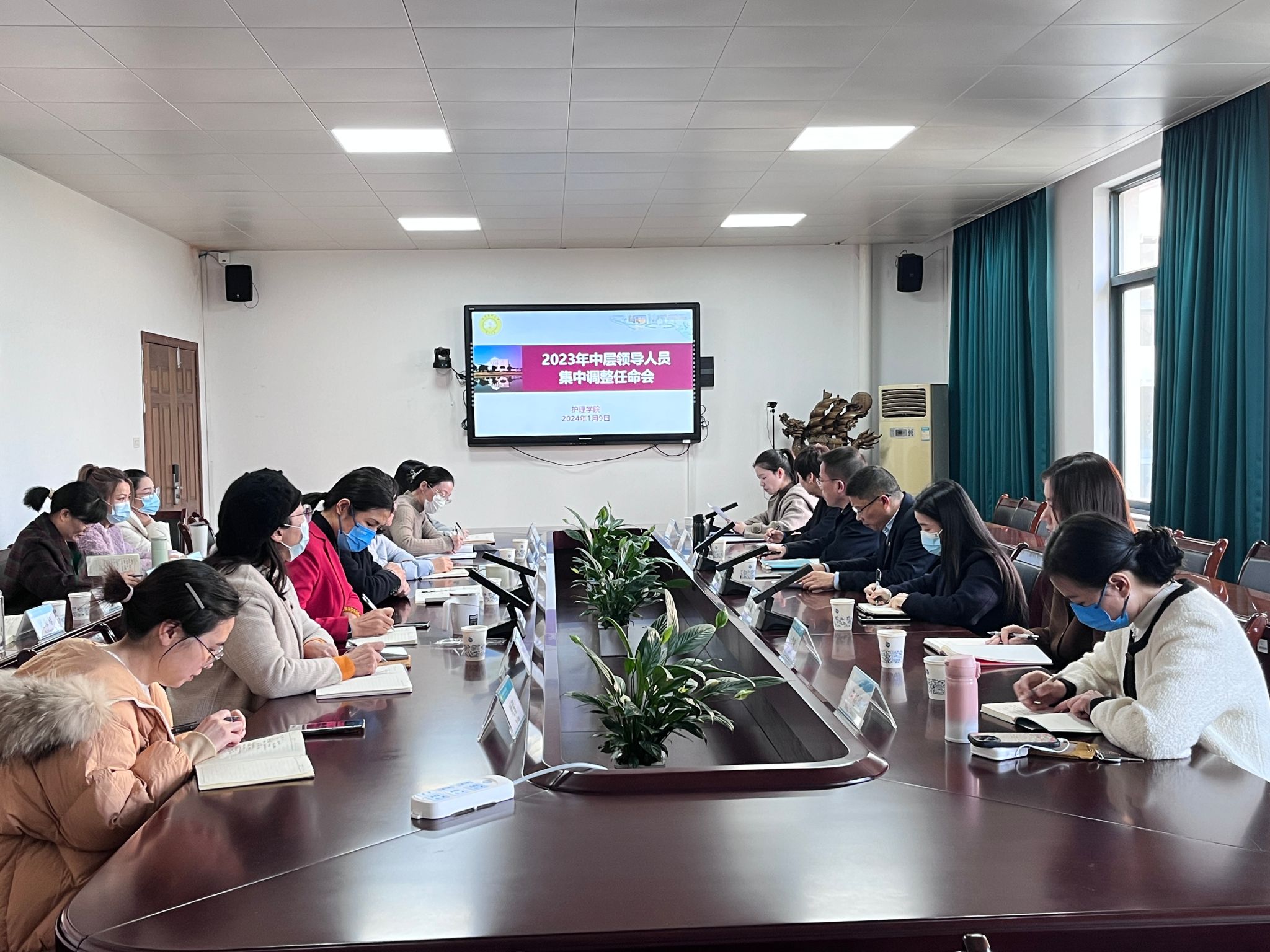 1月9日下午,群交 召开干部任命会。校党委委员、组织部部长章成斌出席会议并讲话,群交 原任、新任领导班子成员及各科室、教研室、实验室负责人等参加会议,会议由校党委组织部组织科副科长林婕主持。