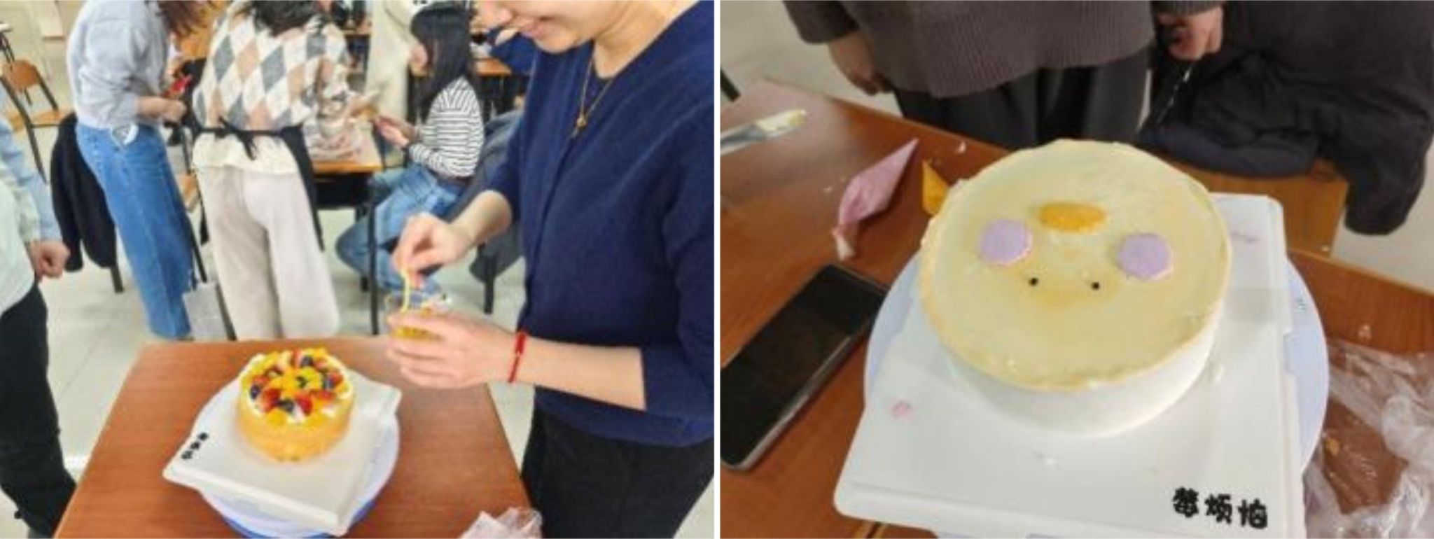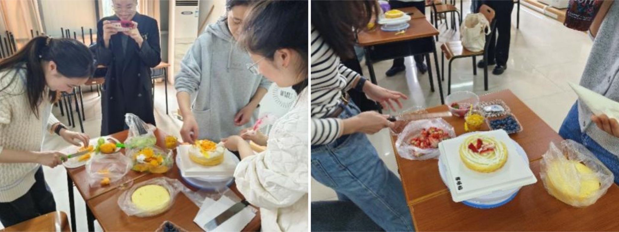 活动开始前,群交 研究生会为同学们准备了丰富的蛋糕制作原料,如蛋糕胚、奶油、水果等。在简单介绍蛋糕DIY活动流程后,大家纷纷动手开始制作。活动中,同学们充分展示自己的才能,以独特的设计理念和风格,制作出了精美的蛋糕作品。一些蛋糕上点缀着美丽的鲜花和糖霜,而另外一些则以简洁流畅的线条进行装饰,每位同学的作品都充满了个性和想象力。