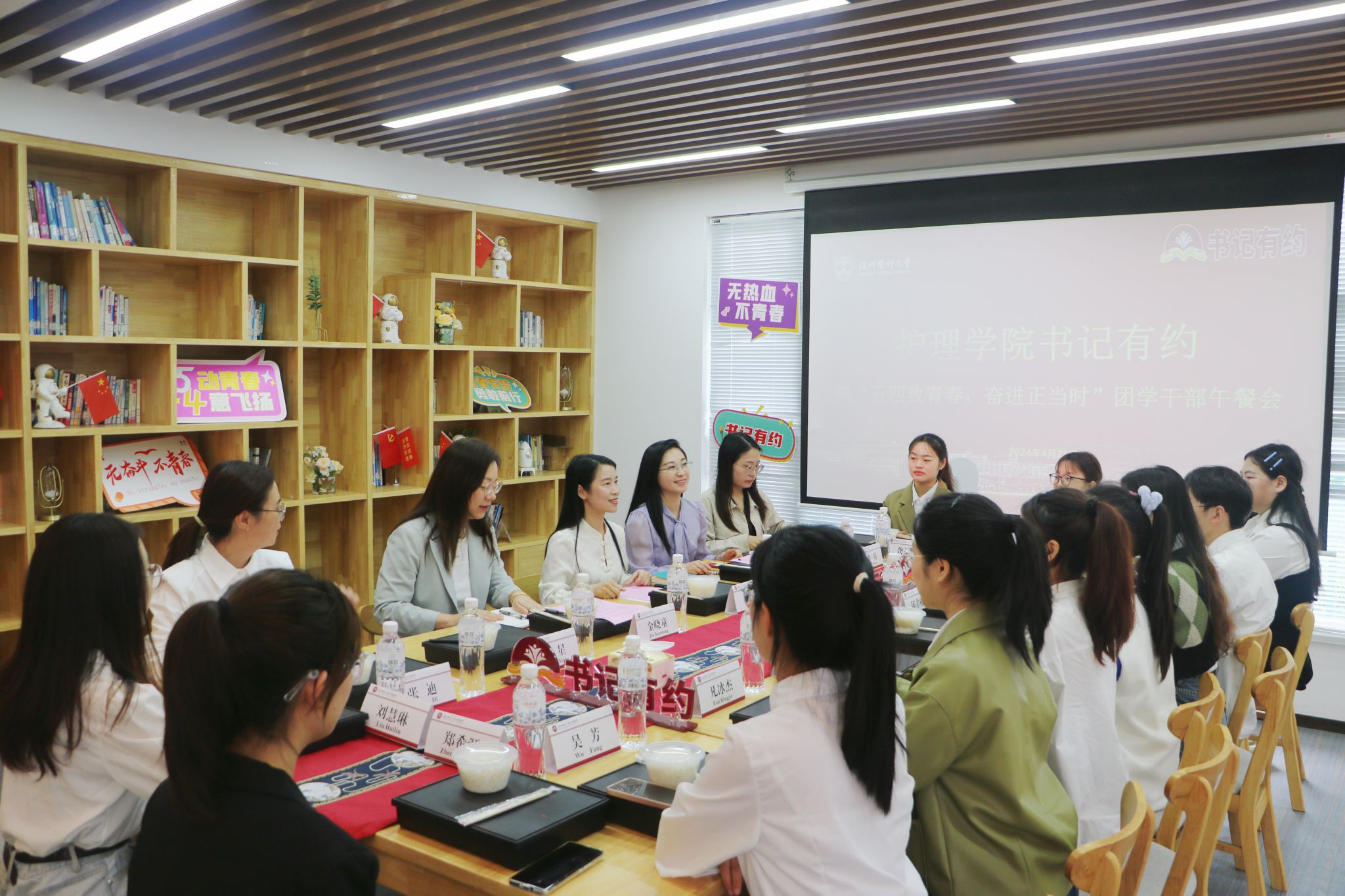 为了弘扬五四精神,凝聚青年力量,提升学生干部队伍建设,4月25日中午,群交 在我家书房举行书记有约暨“五四致青春 奋进正当时”师生干部午餐会。群交 党委书记王敏、党委副书记金晓童、学工办主任张婧婧、团委书记叶星、辅导员张迪与群交 主要学生干部共谈青春,共讲奋斗,共话理想!