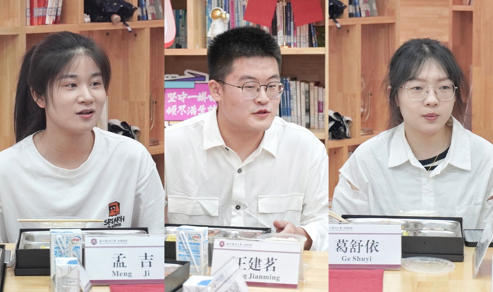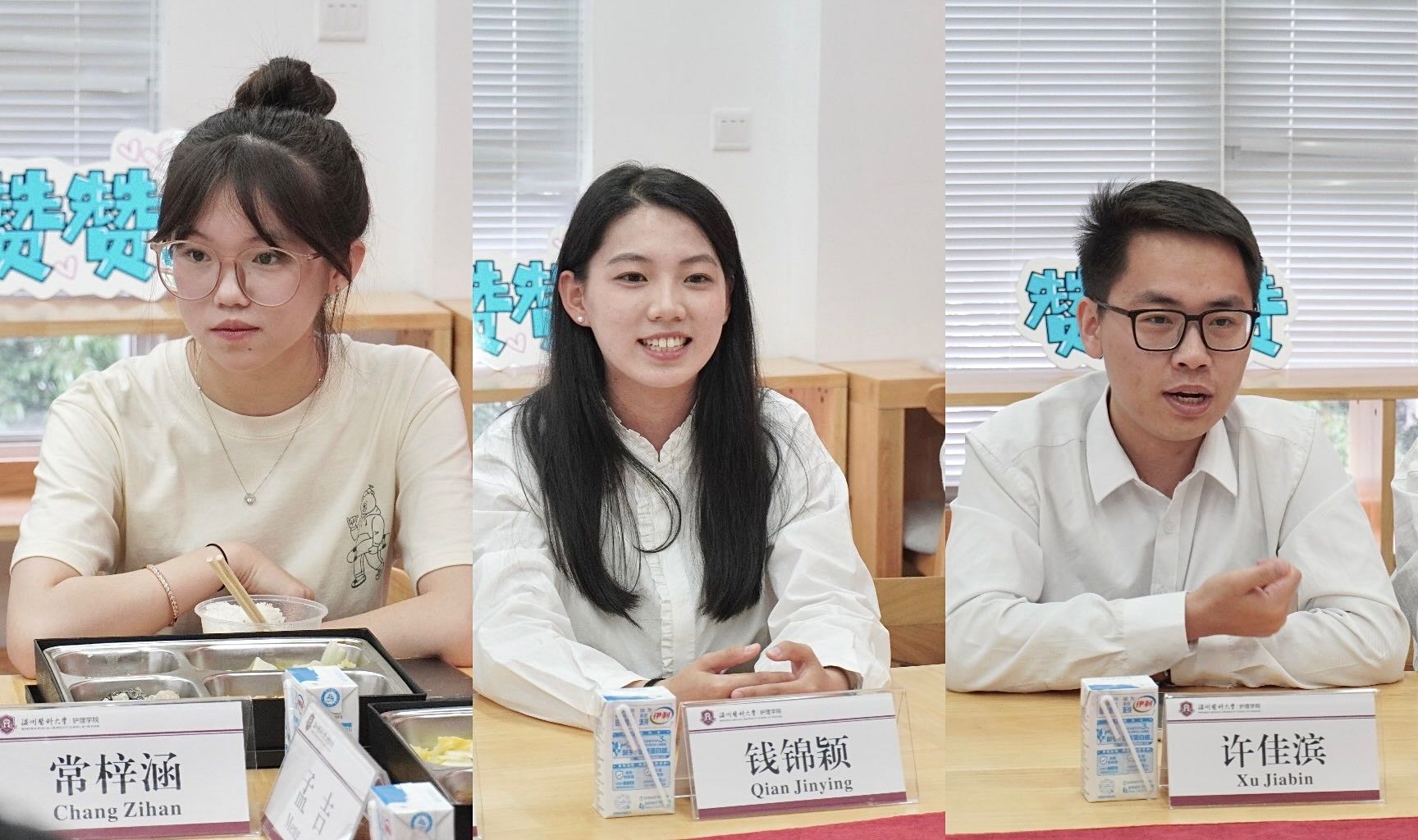 2021级卓越护生许佳滨提到,“加入卓越护生,使我真正接触了科研。在老师的指导下,我的质性研究、综述研究论文都已在顺利推进中,也以第一负责人撰写过多次的标书。未来我想以老年陪诊服务作为切入口,对该内容进行深入研究。”2022级卓越护生钱锦颖说道,“加入卓越护生的两年来,在老师的指导下,通过与团队成员的紧密合作,不仅让我学会了如何高效地沟通和解决问题,也切实提升了自己的专业和科研素养。“2023级卓越护生黄王硕说道,”我现在正处于学习R语言的过程中,正在逐步了解数据分析的代码编程,每次在看视频并且成功实操复盘后,我都感觉到自己在一个全新的领域渐渐收获成就感、满足感。“......9位卓越护生围绕考研升学、科研能力、专业学习、创新思维、职业发展等方面谈过往、话现在、展未来,现场气氛温暖热烈,充满活力。