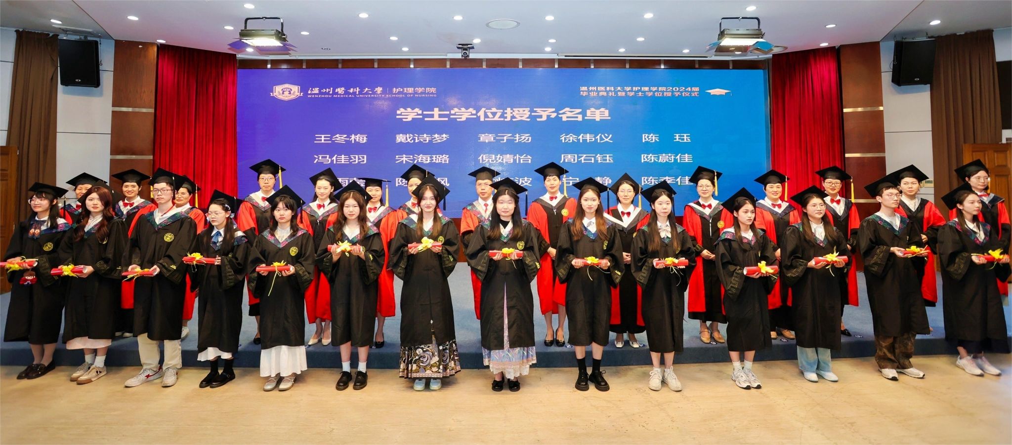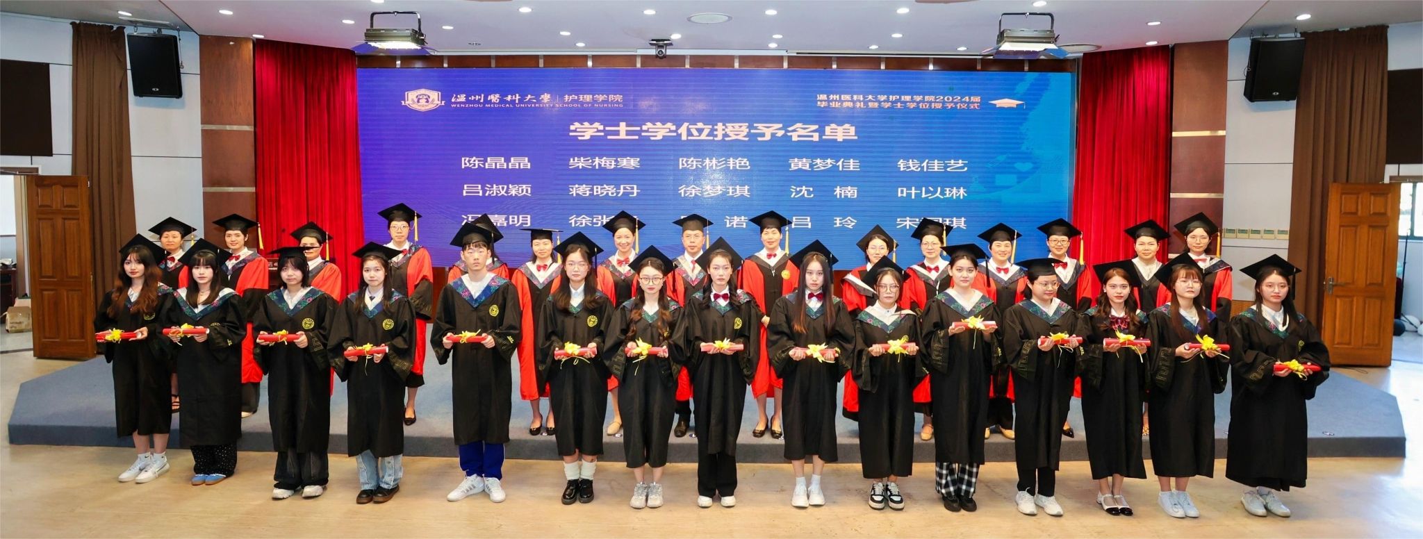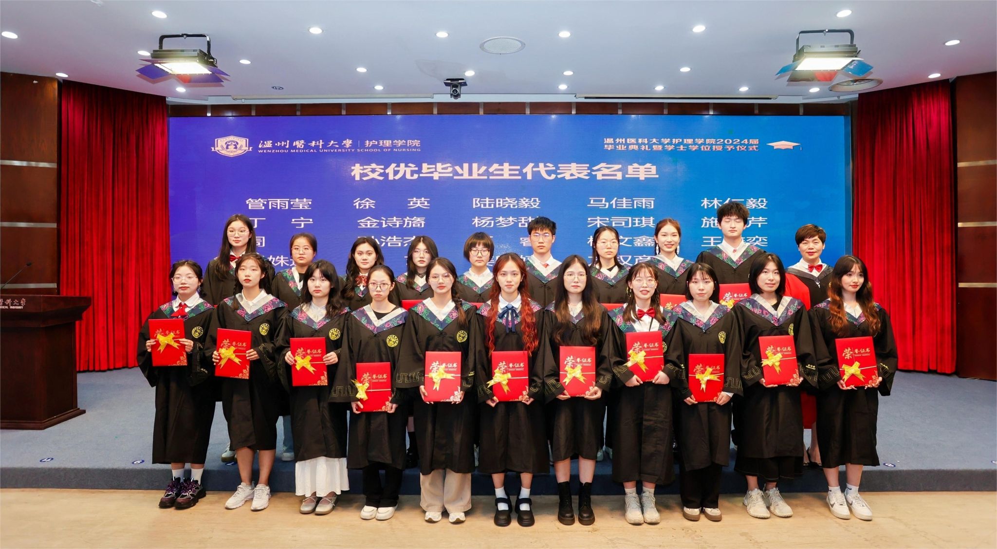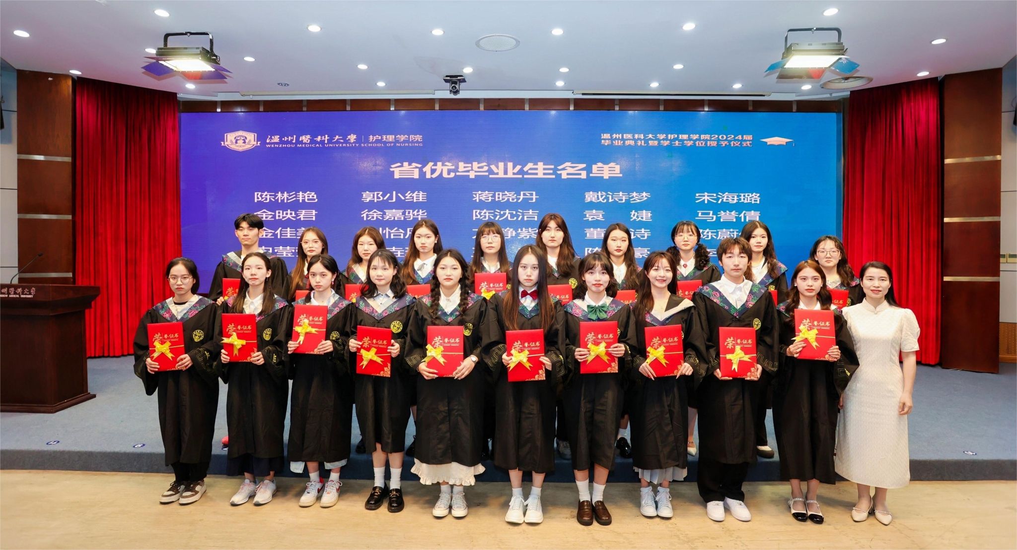 2024届本专科毕业生中有20位学子获浙江省优秀毕业生称号,85位学子获群交 优秀毕业生称号,35位同学成功考取研究生。其中20护本7班蒋泽凯同学成功考取浙江大学护理学专业研究生;20护本6班袁婕同学荣获校“十佳大学生”荣誉称号,同时她也在第十八届“挑战杯”全国大学生课外学术科技作品竞赛获一等奖;21护专金雨欣同学在全国大学生田径锦标赛女子铅球项目中取得第八名好成绩,刷新我校田径历史;20护本1班团支部成功入选浙江省高校“活力团支部”,多位毕业生在核心期刊及以上杂志发表论文或在各类创新创业大赛中获得佳绩。