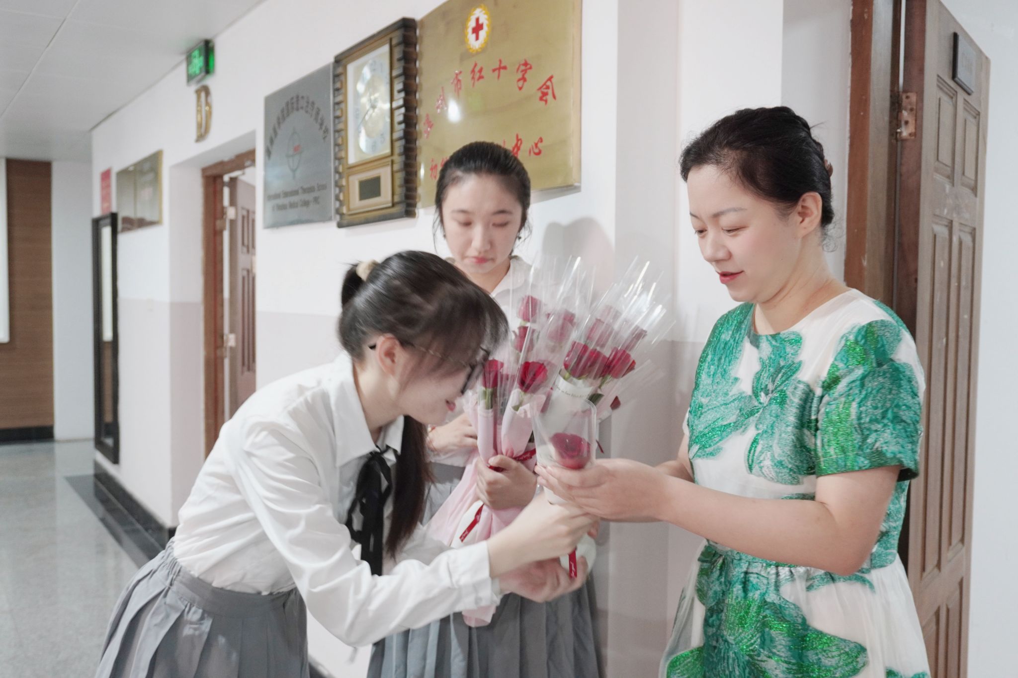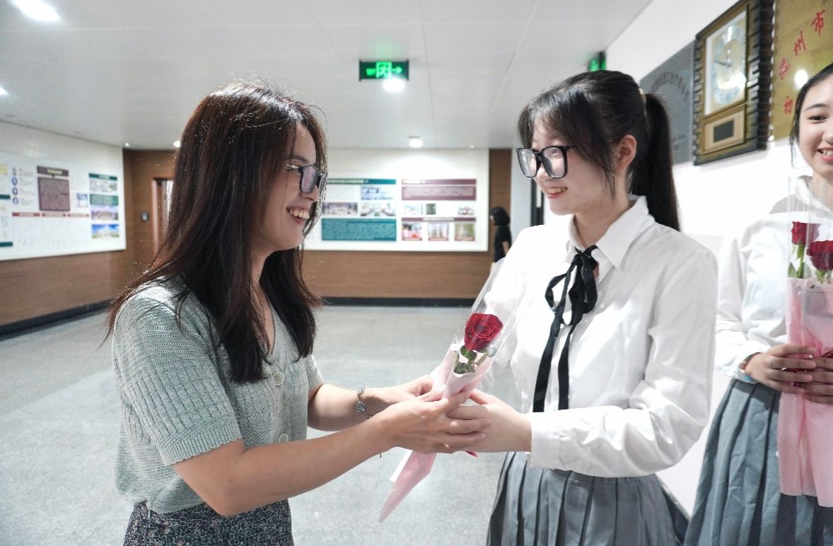 以花言心,诚挚感恩。为表达对老师的敬意,同学们早早站在门口,向老师们献上精心准备的花朵,感恩老师们的真情陪伴!