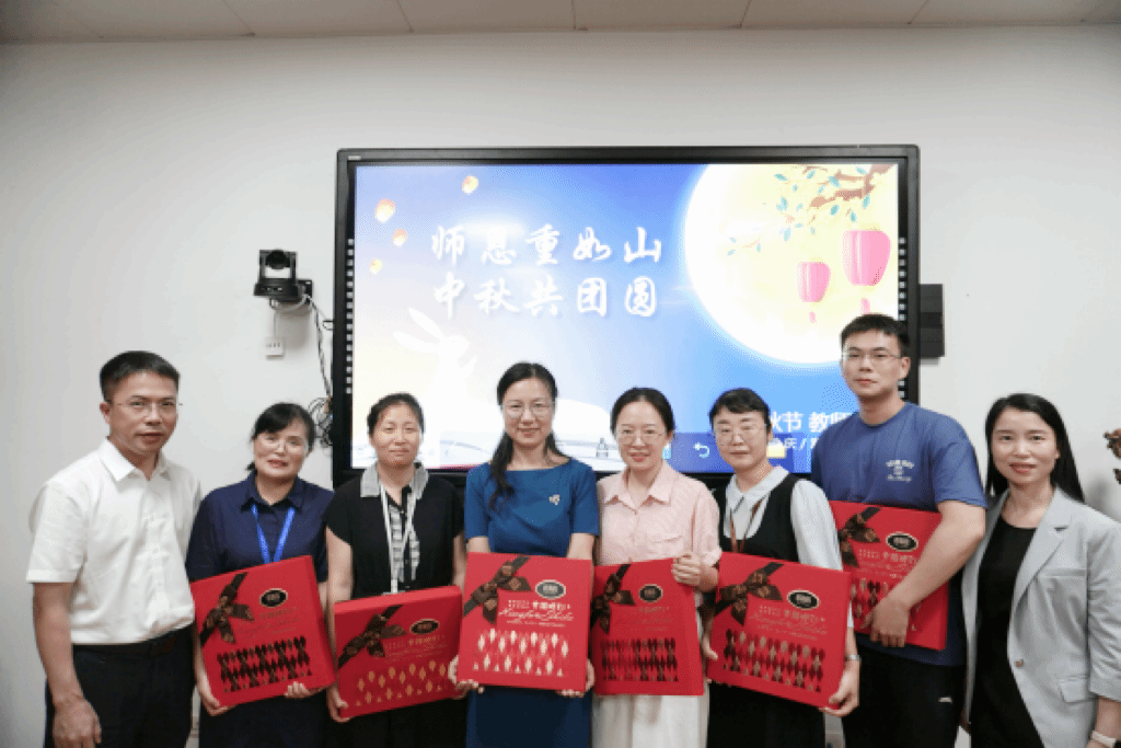 月满中秋,礼献老师。为向辛勤耕耘在教育一线的广大教师致以节日的问候和美好的祝福,群交 工会为老师们准备了精美的蛋糕、台扇和月饼,群交 院长蔡福满、党委书记王敏向各个教研室、办公室送上月饼,并合影留念。