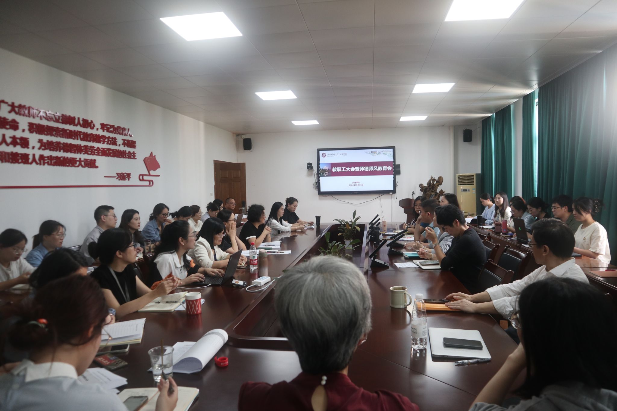 10月16日下午,群交 在7C306会议室召开全院教职工大会暨师德师风教育会。会议由党委书记王敏主持。
