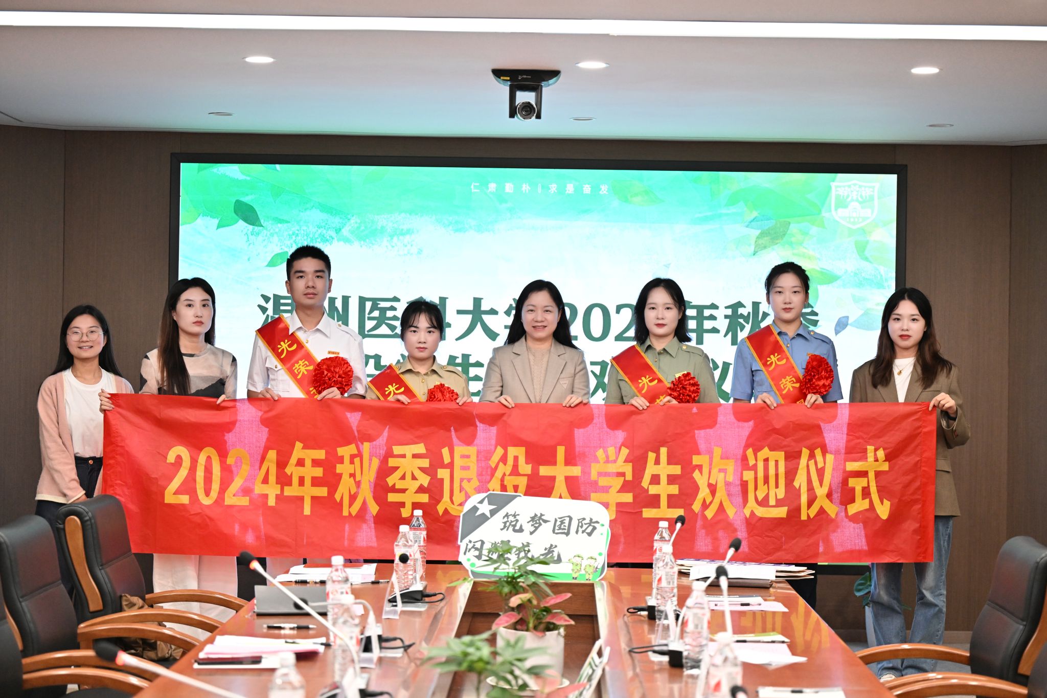 为热烈欢迎退伍学生,充分发挥退伍学生榜样的力量,形成辐射带动作用,10月31日下午,学校秋季退役学生返校欢迎仪式在同心楼四楼热烈召开。群交 党委副书记金晓童、辅导员王爽、李佳佳、田菁菁参会,退伍学生肖芳、刘萱、任楚冉、鲁瀚尹身着戎装参会,并发表感言。