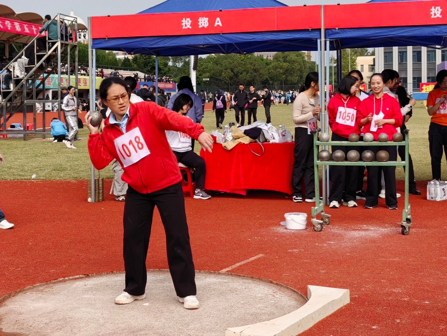 田赛项目中,群交 温利燕老师,在教乙青年女子铅球决赛中获得第8名。群交 学子不负众望。在学生女子标枪决赛中,群交 金雨舒获得第五名;章雨欣在学生女子三级跳中获得第六名;董乐在学生女子跳高项目中获得第七名。