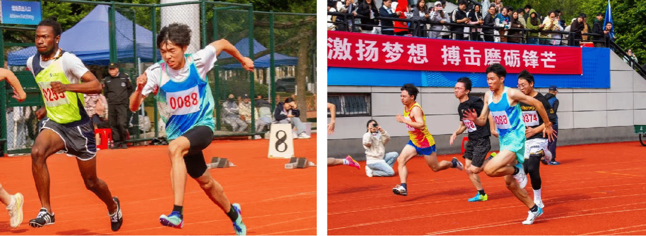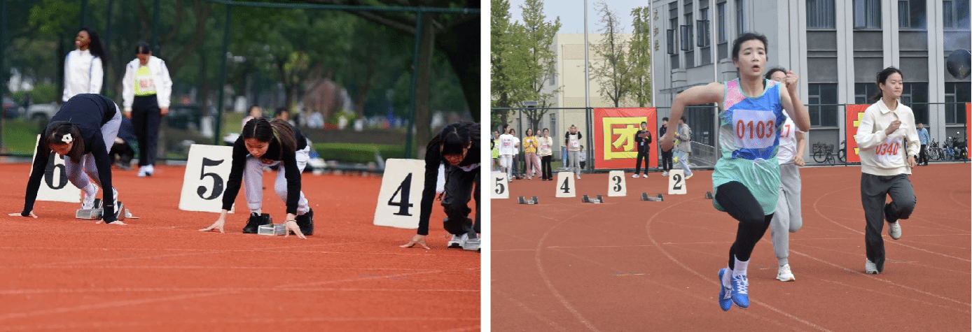 学生径赛项目中,群交 学子在绿茵场上挥洒汗水,让激情在竞技中绽放,勇攀高峰。群交 学生女子组争分夺秒巾帼不让须眉:石可馨、蔡晨阳、倪楚璇在学生女子100米栏中分别获得第二、三、五名;胡玲、宋湘珺、钱锦颖分别在学生女子100米中获得第三、四、七名;杨玉珍、王晶熠在学生女子400米中分别荣获第五、八名;袁艺锦、陈乐霖分别在学生女子1500米中获得第四、五名;群交 学生男子在比赛中奋勇争先取得良好成绩:钟泽汉、黄玄烨在学生男子100米中分别获得第二、五名;何行健、卫阳磊在学生男子110米栏中分别获得第七、八名;吕晨垚在学生男子400米中荣获第七名。4×100米接力的赛场上群交 运动员齐心协力,勇往无前——宋湘珺、石可馨、胡玲、钱锦颖获得学生女子组第一名;卫阳磊、黄玄烨、邬易航、钟泽汉获得学生男子组第三名。