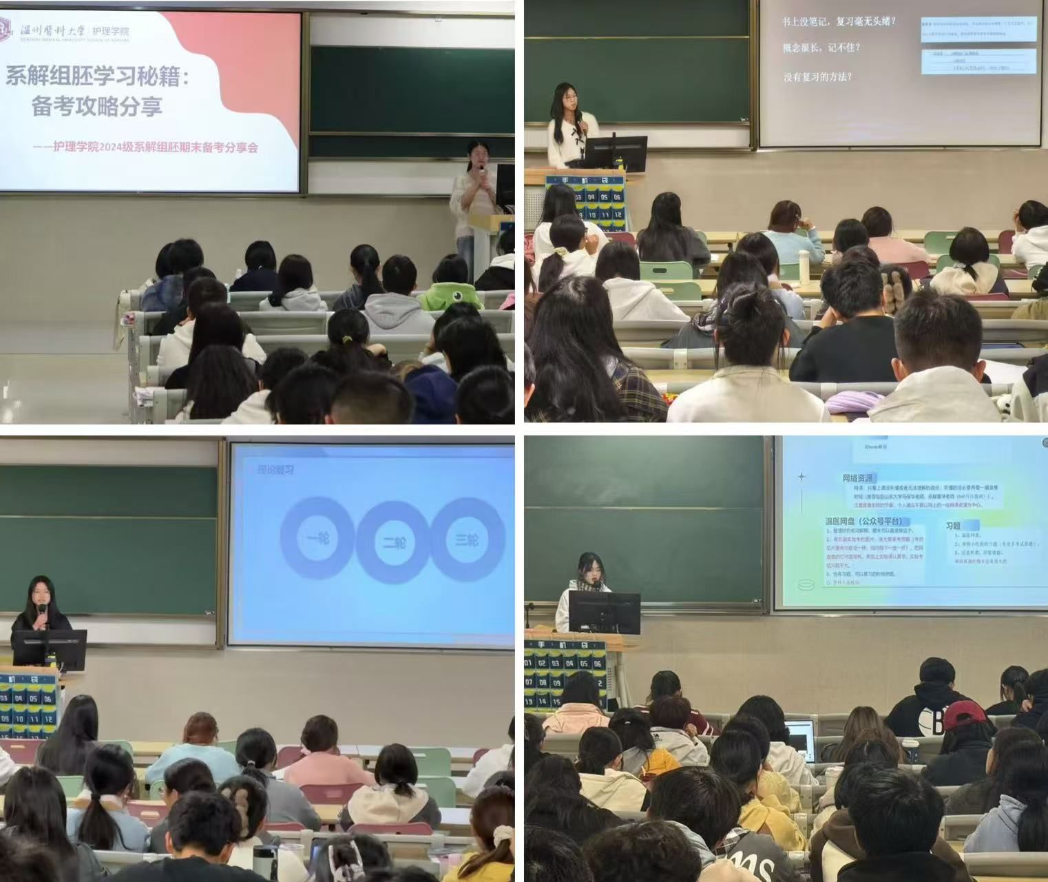 工欲善其事,必先利其器。为进一步加强群交 学风建设,营造浓厚的学习氛围,帮助24级新生提高期末复习效率,缓解紧张焦虑的心情,群交 于11月26日在滨海校区5个教室开展了系解、组胚的备考分享会,共计680余名新生共同参与学习。