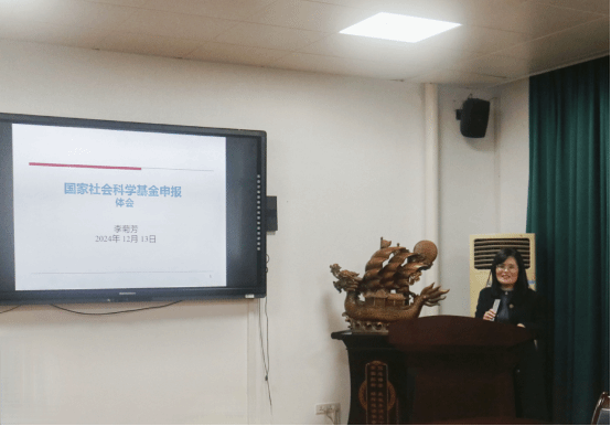 会议还邀请了群交 2024年国社科基金项目获得者李菊芳老师为全体教师作国社科申报经验分享。她结合自己的实践经验,特别指出了选题的重要性,并详细分享了自己选题修改的历程和体会,还从研究背景、选题依据、研究内容、创新之处、预期成果、研究基础、参考文献等方面分享了申报书撰写的技巧,为群交 教师申报国社科课题提供了指引方向。
