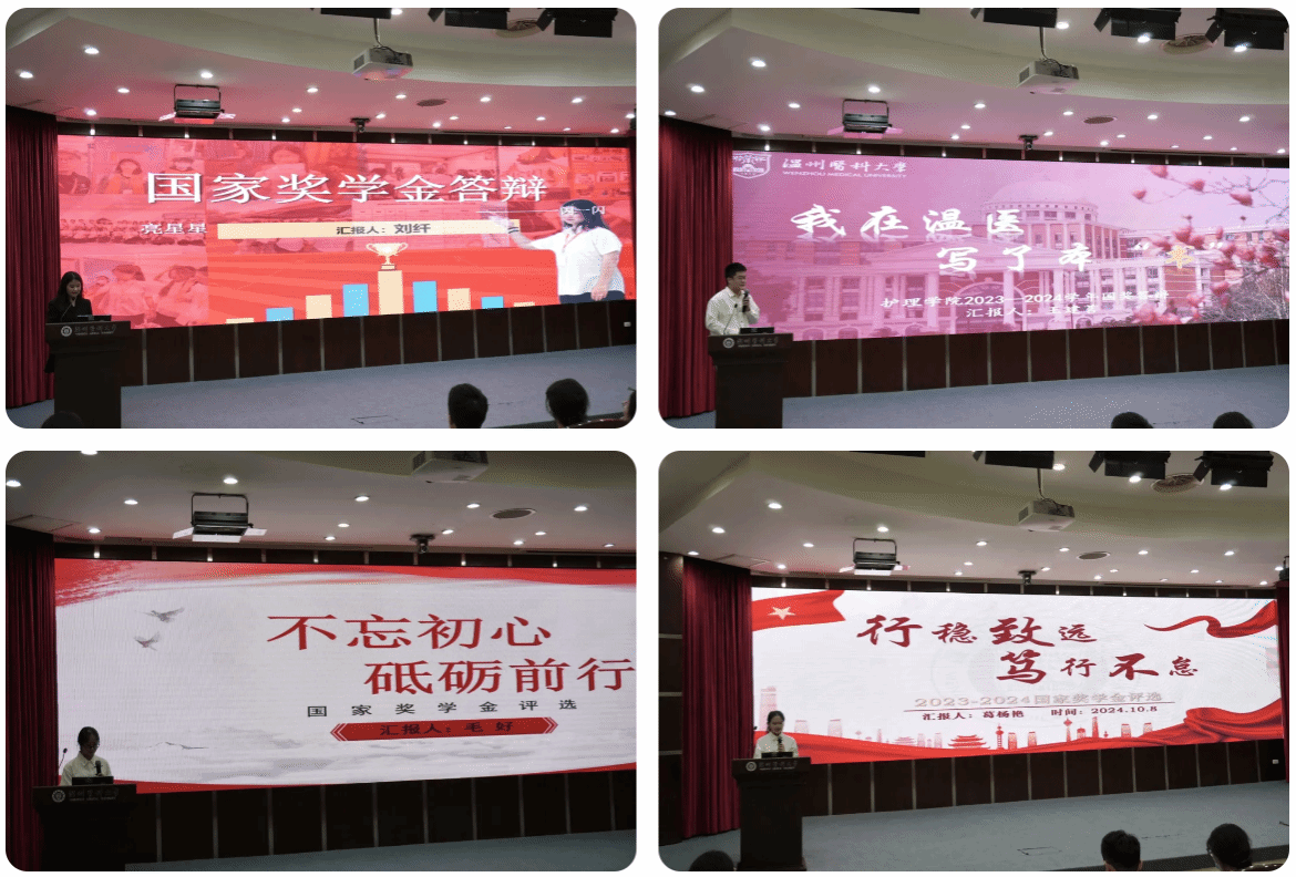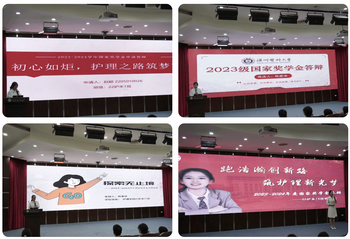 经过数小时的激烈角逐后,现场的教师代表和学生代表秉持公开、公正、公平的原则进行了投票,最终选出四名国家奖学金获得者,他们分别是国家奖学金获得者21护本 1班: 王建茗22护本 8班: 张苏宁22护本 15班: 钱锦颖22助产 2班: 刘 纤