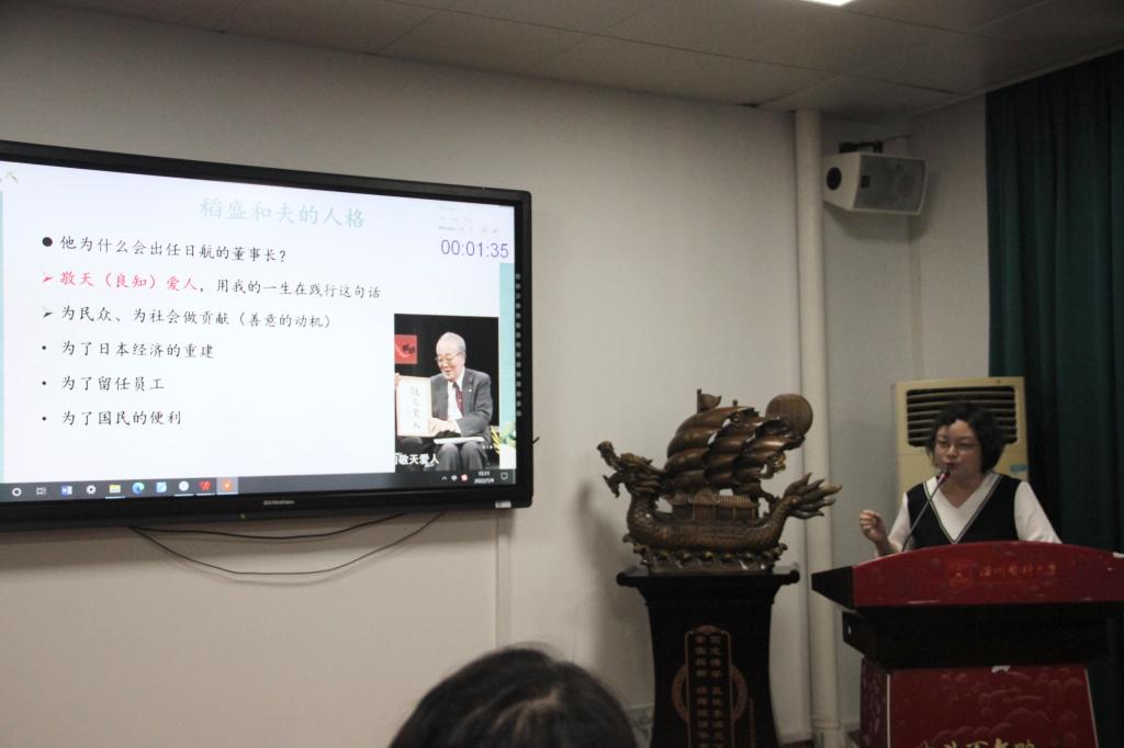 黄盼老师介绍的是日本著名实业家稻盛和夫的心学。她从稻盛和夫在商业领域的成功出发,寻找其成功背后的秘诀。除了独具慧眼的商业头脑,让稻盛和夫能成功的因素更重要的是智慧,是其仁爱、利他和回报社会的经营哲学。他运用其成功之道、经营之道,伴随日本经济的起起落落,创造出了一个个商业奇迹。这个社会永远不缺商业奇才,而他成功之后依然拥有饱满的热情、不懈的动力和感恩的情怀,值得我们思考学习。