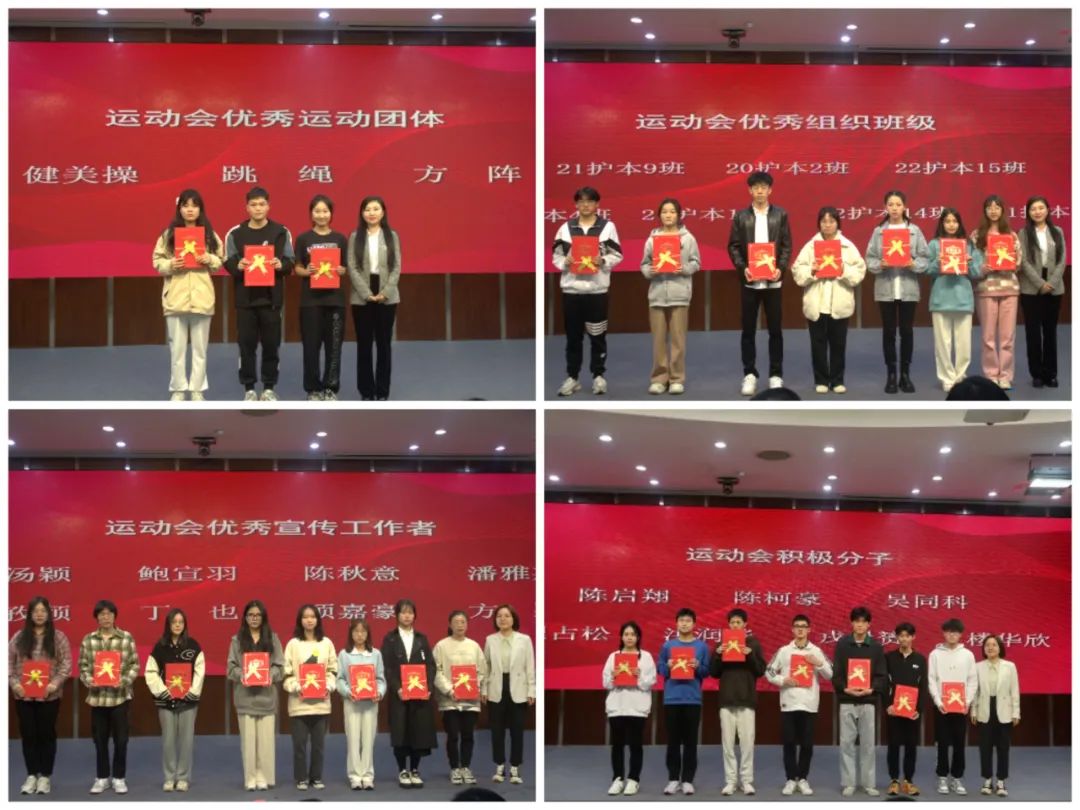 护理学子荣获女子团体冠军、男子团体第四、田径团体总分第四、体育道德风尚奖等多项荣誉。大会对取得优异成绩的运动员以及辛苦付出的教练员、工作人员进行了表彰,很好地体现了群交 的团结、和睦、进取的体育精神,展现了同学们积极进取、顽强拼搏、奋发向上、勇攀高峰的旺盛斗志。