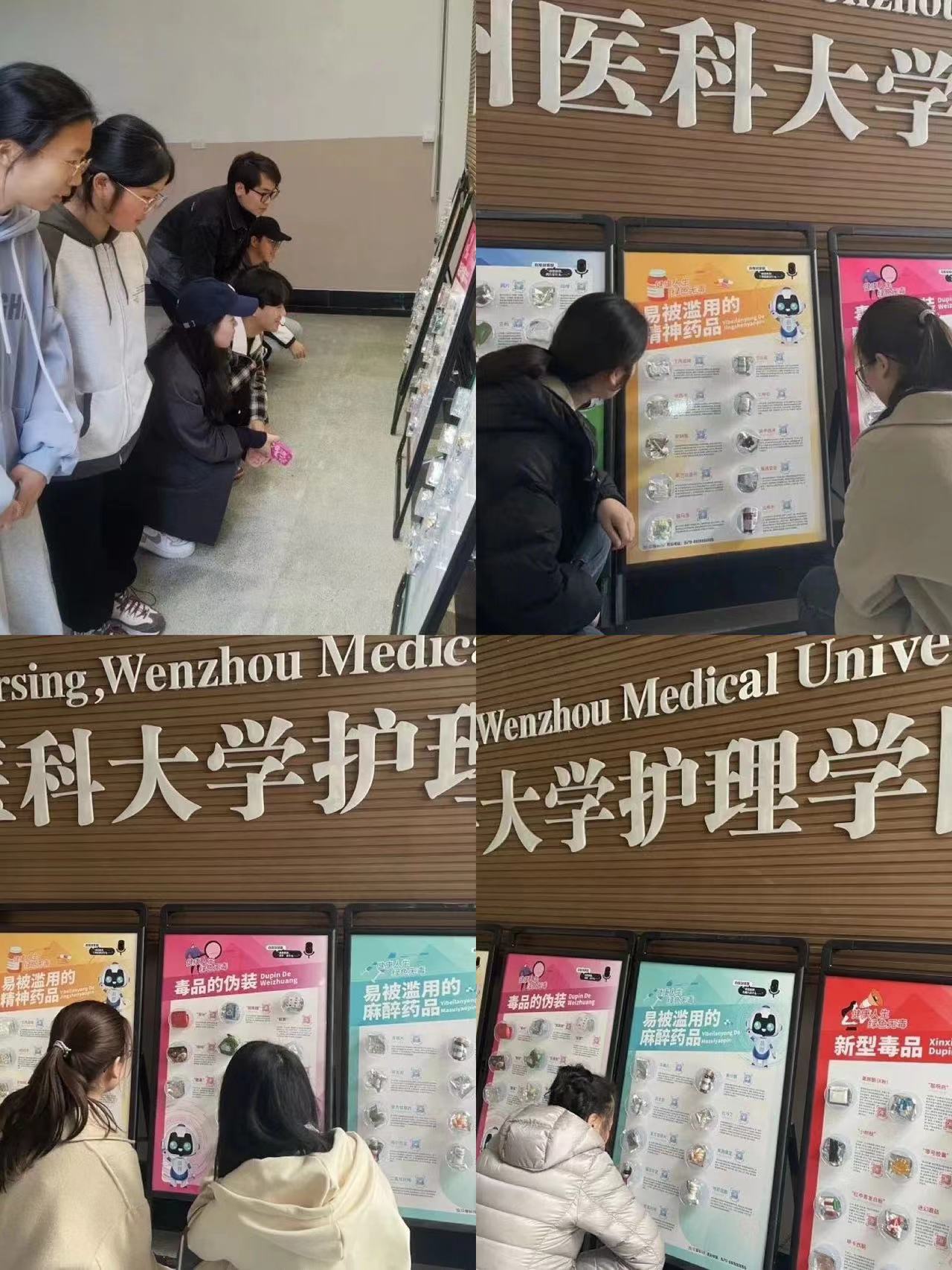 3月27日下午,群交 白鸽青年志愿者服务社在7D二楼开展了禁毒科普宣传活动。此次活动覆盖了群交 的全体同学,共展出54种毒品,分为五个大板块,包括传统毒品,易被滥用的精神药品,毒品的伪装,易被滥用的麻醉药品,新型毒品。这不仅给同学们普及了毒品知识,还提高了他们的辨别能力。所陈列的展览板有智能语音功能,每个展览板上还放置了各类实物模型,使同学们能够近距离认识和了解毒品。
