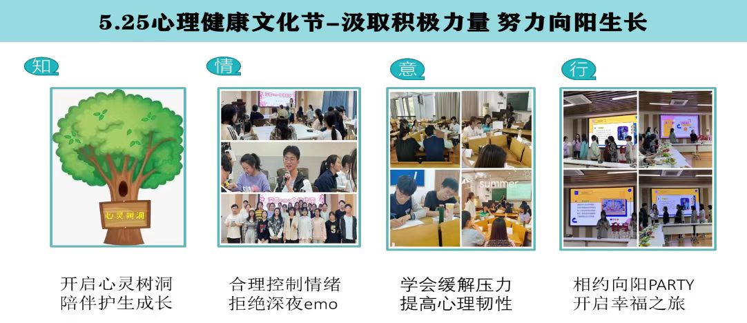群交 心理辅导站自成立以来秉承“勤勉、仁爱、慎独、求真”的院训精神,致力于培养自信有活力、知性又优雅的卓越护理人才。目前本辅导站共有国家二级心理师2名、国家三级心理咨询师3名、家庭教育指导师1名,设有1个专门负责开展学生心理健康教育活动的社团组织-护心工作室。辅导站有明确的规章制度,会在每学期制定心理健康教育工作计划。在全体辅导员的共同努力下,辅导站逐步探索形成了“教育教学启心”“实践活动润心”“预防干预宽心”“咨询服务暖心”“协同联动护心”五位一体的心理育人模式。辅导站持续开展心理谈心谈话,组织团体心理辅导活动,进行心理危机干预。此外,辅导站还努力实现育心与育德的有效融合,培养了一批具有大德大爱情怀的卓越护生。自2013年以来,在校生中26人应征入伍、戍边卫国;56人响应号召,奔赴条件艰苦的云贵等西部和边疆地区服务,8人扎根西藏,支援藏区建设;4人成功捐献骨髓,为他人带去生的希望;10人在危急关头运用急救知识救人,挽回多条生命;疫情期间,600余名学生党团员以各自方式服务疫情防控等。