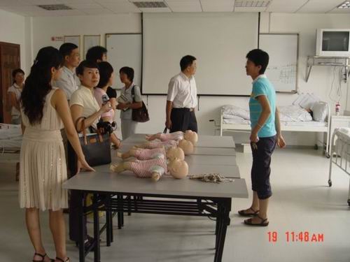 交流和座谈会结束后,徐瑞金书记和曹梅娟副院长一行在群交 实验室负责人姜文莉老师的陪同下,先后参观了群交 的护理学基础实验室、健康评估实验室、护理示教室、综合模拟训练实验室、外科实验室和康复护理实验室。
