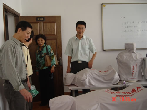 2005年9月30日上午10,在温州医群交 附属二院郑志强教授和林胜璋副教授的陪同下,中华医学会外科学分会副主任委员、北京大学冷希圣教授参观了群交 的示教室和实验室。在护理示教室,他对今天温医护理学生拥有的学习条件感到由衷的高兴,并认为群交 护理学生拥有的实验条件决不亚于北大群交 学生。