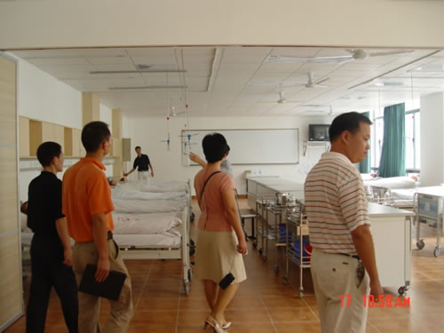 陈行汉副书记向客人们介绍了学校和群交 的办学历史,护理专业的发展情况。群交 办公室王世泽老师向客人们详细汇报了群交 的招生就业、学科建设、人才培养、实验室建设、教学管理和实习基地建设等有关方面情况。朱卫民院长也向我们简单介绍了广西医科大学群交 的教学、科研和人才培养情况。随后客人们参观了群交 护理学基础、急救护理学、外科护理学、妇儿实验室和护理示教室,他们详细了解了实验室建设规划、布局等情况,对群交 的实验室建设和教学管理工作大加赞赏。