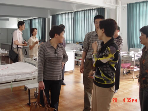 2005年4月28日下午4:20分,湖州师范群交 医群交 张虹院长一行8人在教务处石云霞副处长的陪同下,参观群交 。张虹院长开门见山说要到群交 取经。今年下半年湖州师范群交 要接受教育部评估,她们此行目的是要了解群交 去年教育部评估情况。陈行汉副书记对张院长等来临表示热烈欢迎。他向客人们介绍了群交 的发展历史,群交 评估概况以及招生、就业情况。随后张院长一行参观了护理学实验中心。她们对群交 的实验用房和仪器设备赞不绝口。最后他们着重了解了群交 2004年11月的教育部评估情况,群交 的师资队伍建设和人才培养,教学计划和大纲、课程建设、教学管理、教学手段和方法、学科定位、实验和实习基地建设和教学质量监控等。