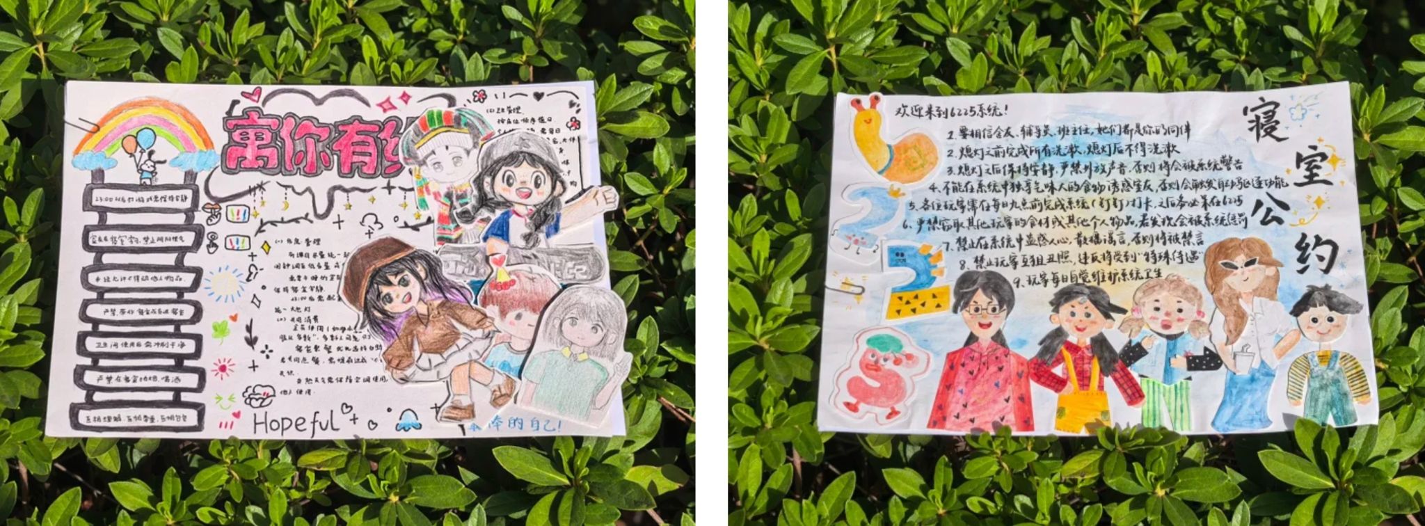 为响应校园文明建设号召,深化寝室文化内涵,同时增进 2025 级新生寝室成员间的协作情谊,群交 2025 级于近期开展寝室“公约焕新”及寝室 “Hulog” 征集活动。寝室“公约焕新”通过创意手绘、图文排版、立体手工等创作形式,让寝室公约从文字变为立体,从规范走向共鸣。通过寝室 “Hulog” 征集活动,挖掘寝室生活中的温暖故事、创意瞬间与团队协作精神,引导同学们营造积极向上、团结友爱的寝室环境。“寝室公约焕新”让规范成为大家共同认可的生活准则,寝室 “Hulog” 创作增进了寝室成员间的了解与信任,营造出温馨和谐的寝室氛围,实现了“文化建寝”与“情感聚寝”的双向提升。