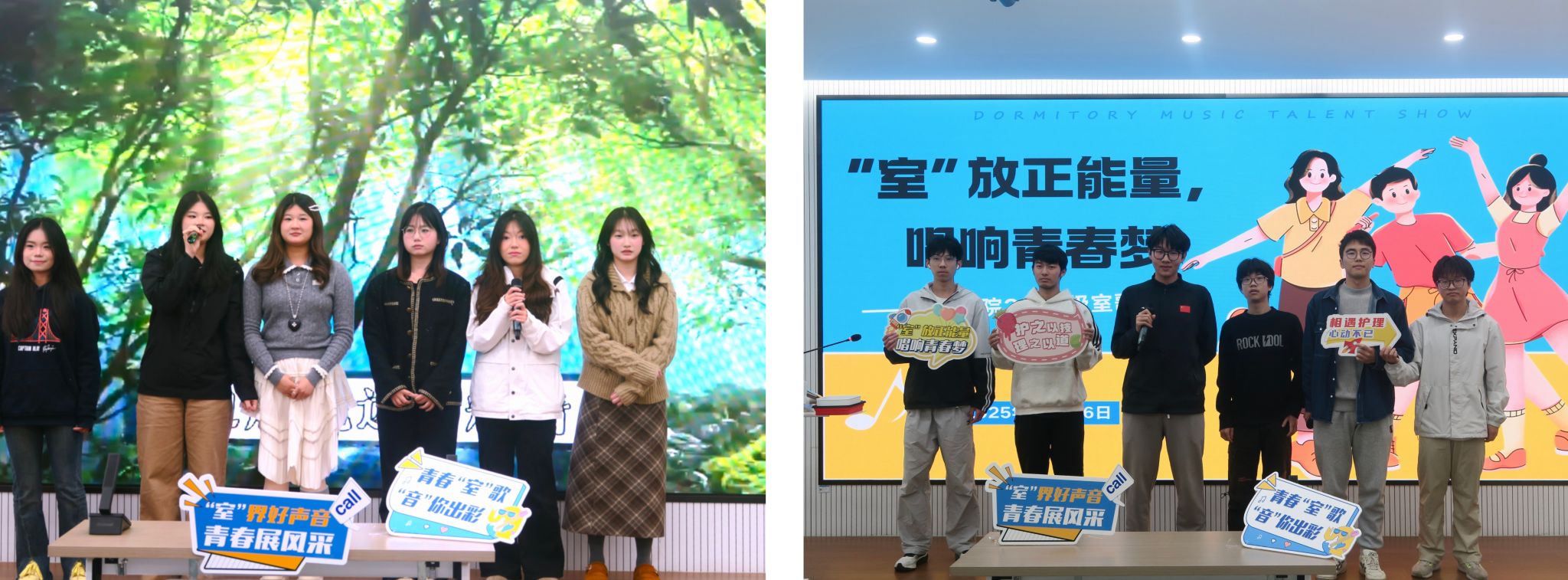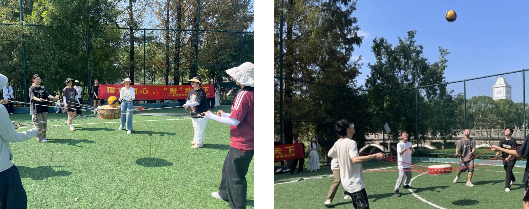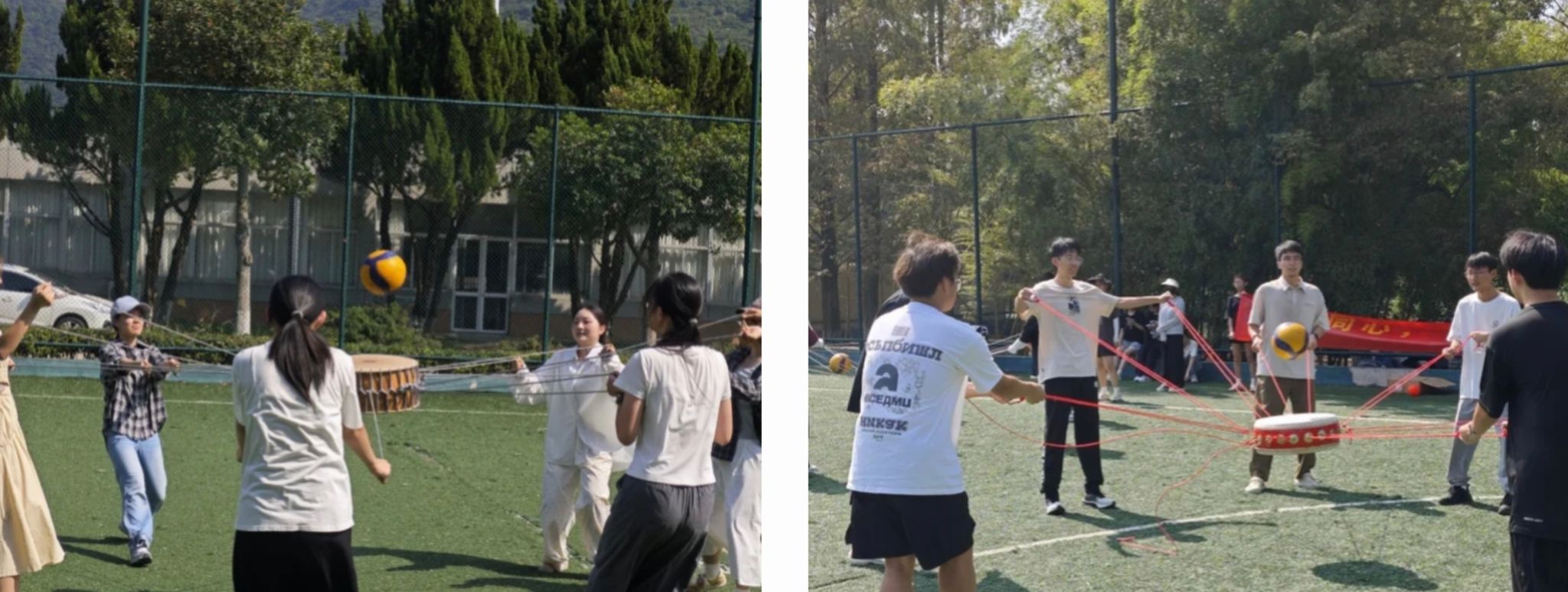 为增进寝室成员默契与友谊、营造温馨寝室氛围,群交 2024级于近期举行“鼓”动天下同心击鼓趣味活动和“歌”咏同心室歌风采展活动。同心击鼓活动中,以多人共同控制一面鼓来击球的方式来加强同学们的团队协作意识和合作能力。室歌风采展活动则展现出各寝室多才多艺的一面。通过室歌的共同创作和演唱,加强了和谐寝室氛围的构建,深化了室友间的情谊,增强了集体凝聚力,为校园文化生活增添了一抹亮丽的色彩。