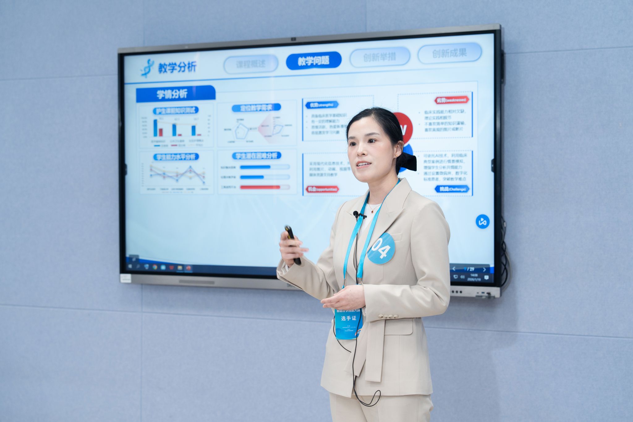 在决赛中,教师围绕课程目标与学情特点,系统阐述了教学创新的设计理念、实施路径与育人成效,充分展现了课程内容的科学性、教学设计的前瞻性以及价值引领的融合性,获得评委专家的认可。