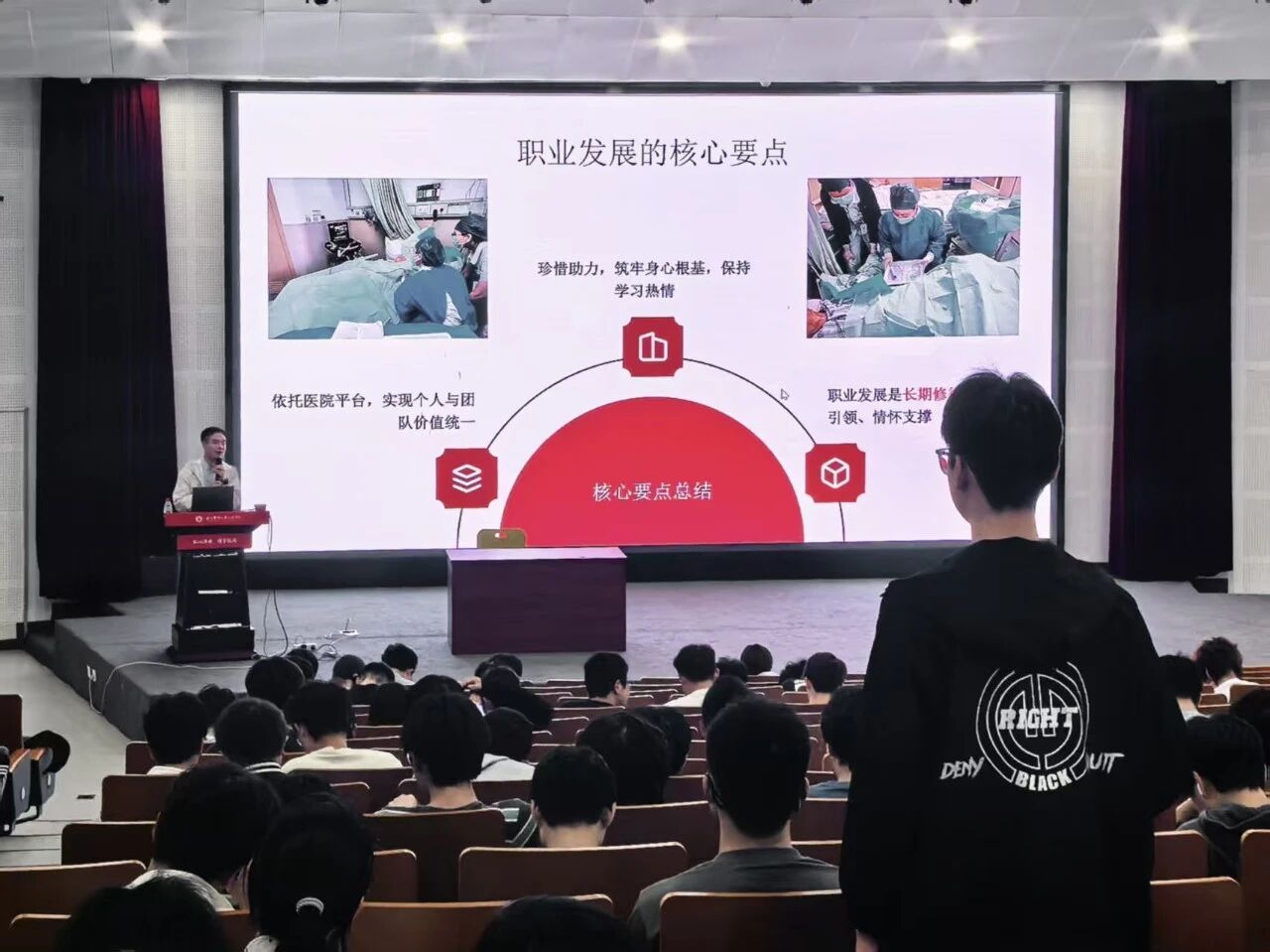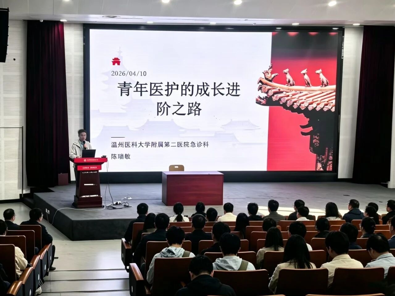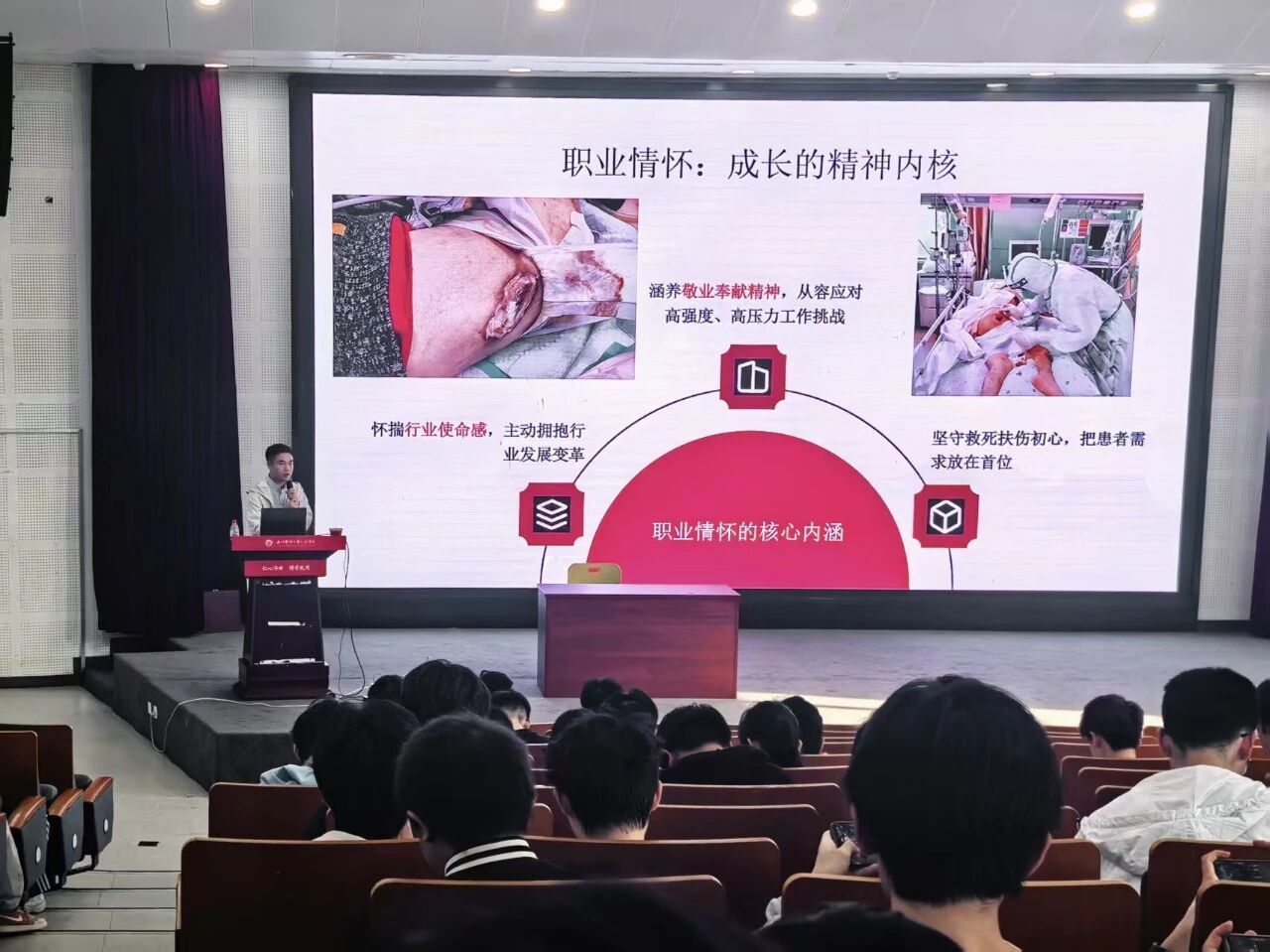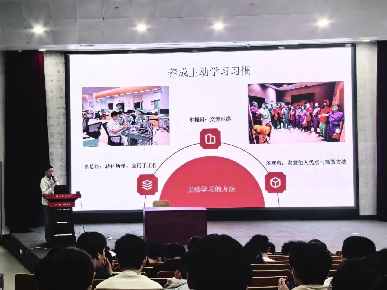 以初心赴使命,以匠心护安康,共话男护成长之路。为进一步加深群交 男生对护理行业的认知,科学规划职业发展方向,群交 于4月10日下午,在滨海校区仁心厅成功举办“男护生成长论坛”主题经验分享讲座。本次讲座荣幸邀请到了群交 附属第二医院急诊科副护士长、副主任护师陈瑞敏老师,陈老师以“按下‘快进键’的急诊室”为题,分享青年医护的成长进阶之路,复盘从专业竞赛到临床一线的实战经验。