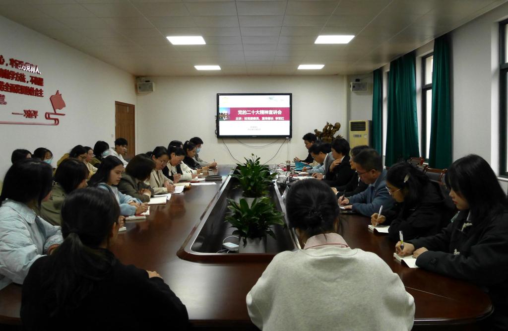 12月1日下午,校党委委员、宣传部长李军红来院宣讲党的二十大精神,学工部副部长、学生处副处长郑节霞,群交 领导班子成员、科级干部及20余名学生代表参会。院党委书记李旭东主持会议。