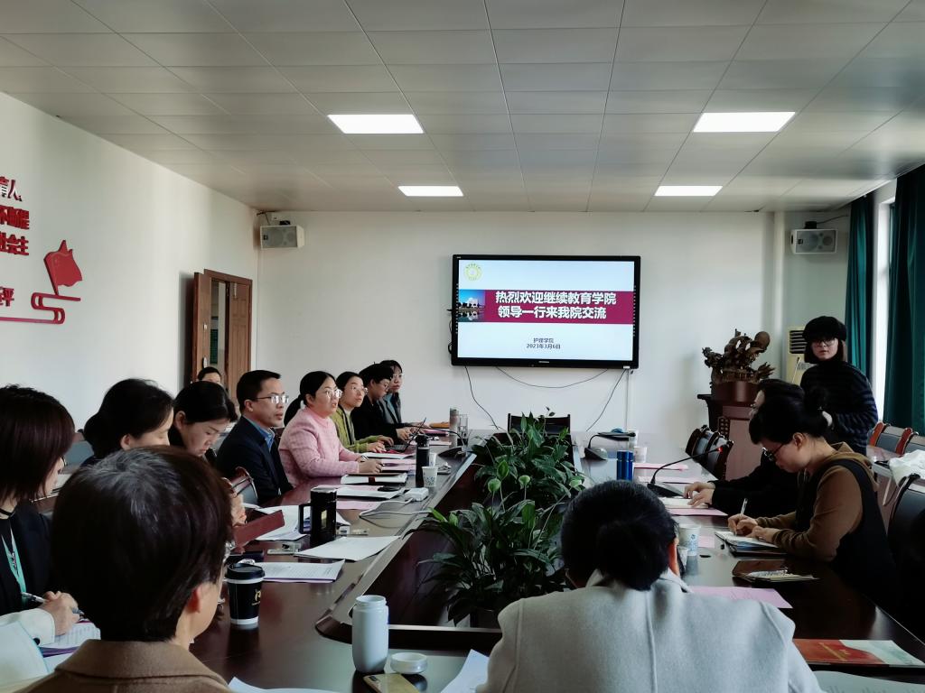 3月6日下午,继续教育群交 院长王世泽、副院长邵凯隽以及教务教学科室相关负责人来群交 讨论交流。群交 院长蔡福满、分管教学副院长杨晔琴、各教研室主任、课程授课老师、教学管理人员参加了交流会。交流会由杨晔琴主持。