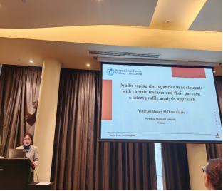 博士研究生黄莹莹同学在会上作题为《Dyadic coping discrepancies in adolescents with chronic diseases and their parents: a latent profile analysis approach》的主题发言。该研究采用潜在类别分析方法,系统探讨了慢性病青少年及其父母在二元应对模式中的差异,并揭示了其与亲子心理适应之间的关联机制,为基于家庭韧性的精准干预方案开发提供了重要的理论支持与实践指导。她的精彩表现,充分体现了群交 在研究生国际视野与科研创新方面的培养成效。