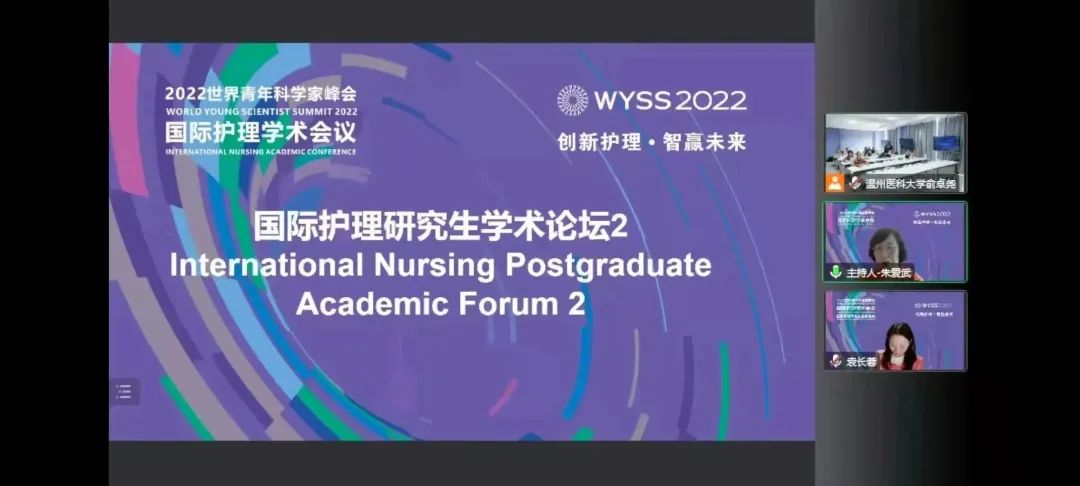 11月18日下午,2022世界青年科学家峰会国际护理研究生学术论坛在7C102、6A105会场同步举行。美国护理科群交 院士、华盛顿大学教授Margaret Heitkemper,法国宜世群交 精神运动康复治疗师Amélie TRUPTIL及31名来自国内外多所知名院校的护理博士、硕士研究生做大会发言。美国护理科群交 院士、西安交通大学李小妹教授,美国护理科群交 院士、复旦大学袁长蓉教授,大连医科大学群交 副院长史铁英教授,浙江大学妇产科医院护理部主任冯素文教授,华中科技大学同济医群交 附属同济医院护理部副主任曾铁英教授,中国护理管理杂志社执行主编邓寒羽等担任点评嘉宾。群交 副院长、温州市护理学会理事长张春梅,温州市中心医院护理部主任、温州市护理学会秘书长朱爱武主持。