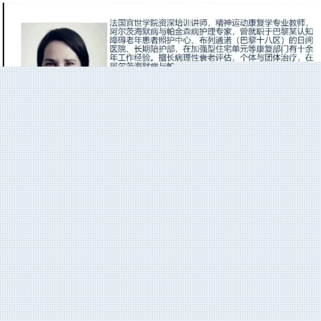 美国护理科群交 院士、华盛顿大学Margaret Heitkemper教授以《Innovative Nursing, Wisdom Wins the Future-Prof》为题展开讲座,重点介绍了她对脊髓型颈椎病干预方案的研究,她相信终有一天能通过护士的干预减少民众脊髓型颈椎病症状并提高生活质量。法国宜世群交 精神运动康复治疗师Amélie TRUPTIL分享了阿尔兹海默症的治疗流程。针对阿尔兹海默症患者精神运动临床实践的丰富多变,她提出治疗方案重点应放在维持余留的精神运动功能和预防出现心理行为症状上,并从患者和家属的需要出发,找到针对其障碍的代偿策略。