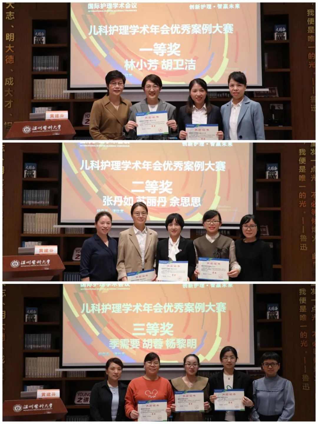 除了国内外护理专家的讲座分享,会议还举行了儿科优秀护理案例比赛。温州市各医院儿科护理单元通过前期初选,最终共推送8项优秀案例参加本次比赛。每位参赛选手准备充分、思路清晰、分析到位,给参会者带来精彩分享的同时,指导大家在临床护理工作中应用循证思维解决临床护理难点,让参会人员受益匪浅、收获满满。经过激烈的角逐,最终评选出一等奖2名,二等奖、三等奖各3名。