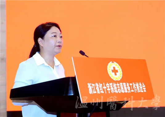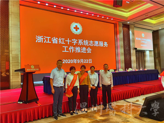 近年来,我校红十字会大力弘扬“人道、博爱、奉献”精神,充分发挥医群交 校的专业优势,全方位推进“关爱生命”志愿服务项目。本次推进会上,我校附属第二医院红十字应急救护志愿服务队作为突出贡献红十字志愿服务团队代表、我校公共卫生与管理群交 “红十字.生命相髓”志愿队指导老师丁娜妮代表突出贡献红十字志愿者参与了现场表彰环节。下一步,学校将以本次推进会为契机,在工作中进行积极探索,以更加开阔的视野和超前的思维,推动学校红十字志愿服务工作取得更大的成绩。