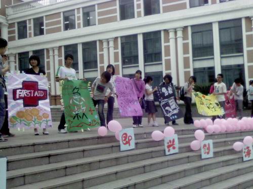 阳光穿过云朵,透过树叶撒下斑驳的圆点,布满春天气息的空气中,夹杂着柔美的音乐在同德楼广场上起伏,广场上响起的掌声给予了表演的同学最大的肯定。4月18日下午群交 白鸽青年志愿者服务社在同德楼广场进行了日常急救知识宣传活动。温州医群交 各个服务社的社长和他们的社员参加了此次活动。