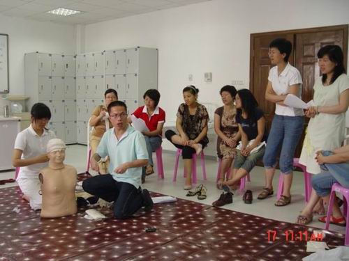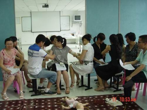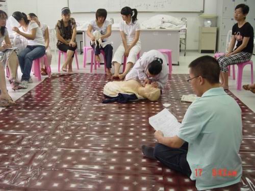 5月中旬,群交 蔡福满老师受浙江省红十字会委派赴北京接受全国红十字总会的救护师培训,取得救护师资格。目前,温州市卫生系统仅只有2人,蔡老师是其中之一。蔡老师返校后立即举行群交 的师资培训,普及救护知识。我校拟在机动车驾驶员、电力、建筑、机场等高危行业和人群中开展救护培训,普及初级卫生救护知识和技能,提高群众的自救互救能力,减轻、减少突发事件伤残伤亡的发生率。
